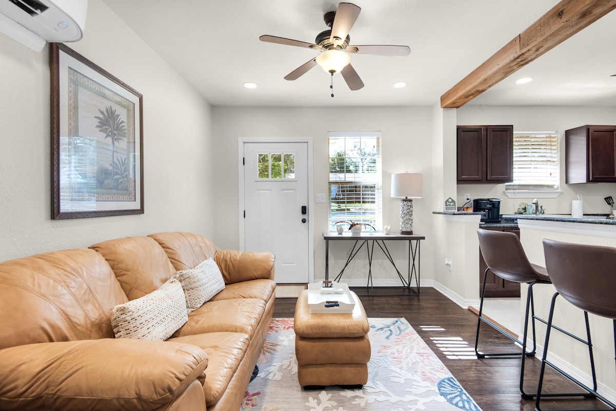 Bienvenido a Cooper's Cottage, una casa de 1933 bellamente renovada en el Garden District de Pensacola, a menos de una milla del centro histórico de Seville Square y Palafox St., donde disfrutarás de bares, restaurantes, tiendas, galerías de arte y mucho más. A solo 15 minutos de la playa de Pensacola y cerca de la sede de los Blue Angels de NAS. Relájate en nuestro patio trasero totalmente vallado y apto para mascotas con parrilla de gas, comedor al aire libre y asientos con chimenea. Hay 2 bicicletas, juegos al aire libre y mucho más. Televisores inteligentes en todas las habitaciones.