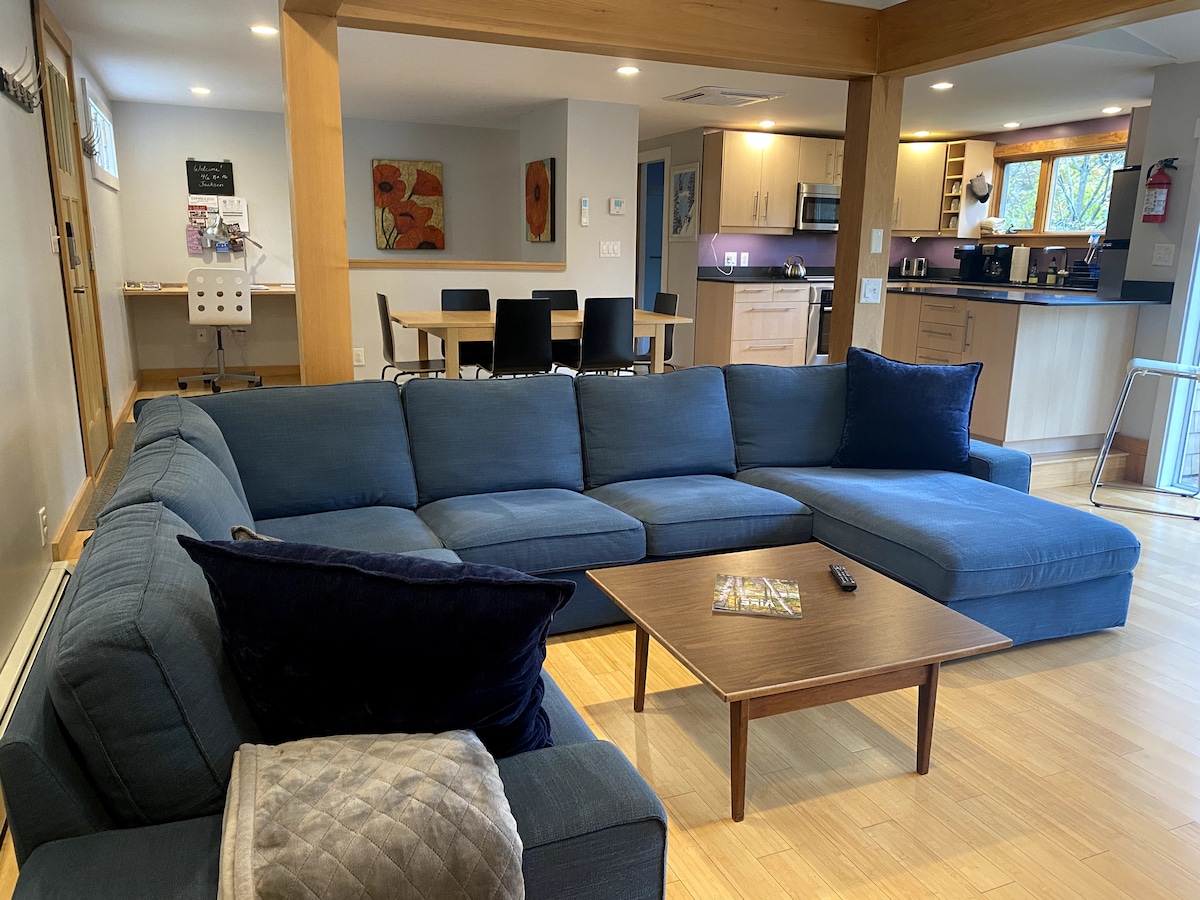 En el corazón de las Montañas Blancas, esta casa contemporánea recién renovada está a pocos minutos de siete áreas de esquí, Story Land, tiendas y restaurantes elegantes. Cascadas, esquí nórdico, pubs, galerías, senderismo, pesca con mosca y escalada a solo unos pasos.