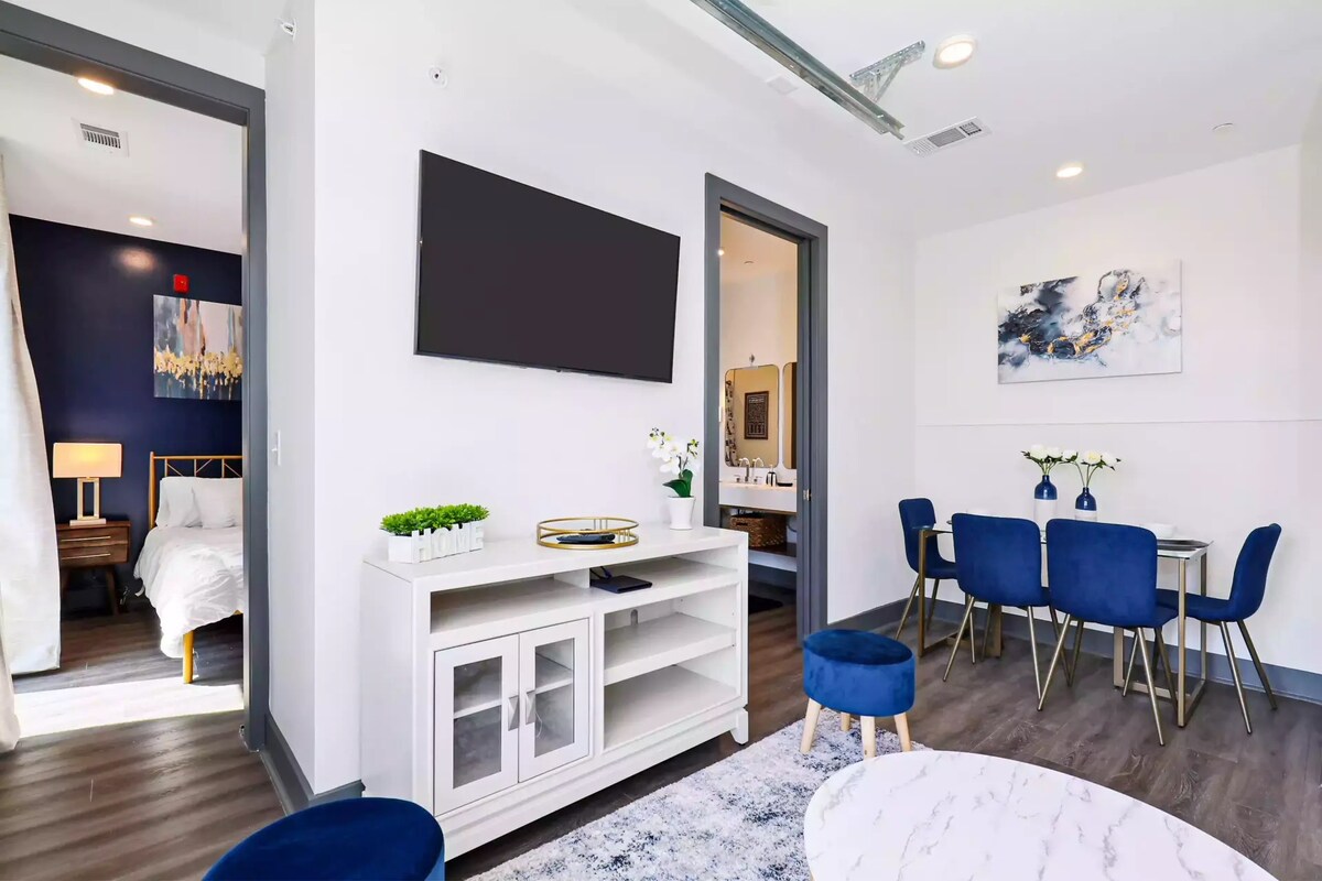 *CONTACT HOST for our current specials* We designed this beautiful penthouse apartment with art, elegance and comfort in mind. You'll love having everything you need for a wonderful stay: a resort-style heated pool, courtyard, top-floor sky lounge, two-story gym & rock climbing wall, multi-level "library" gathering space, and PERFECT LOCATION! Walk 1 blk to Music City Center and Hall of Fame and only 2 blks to Broadway. Whether traveling for business or pleasure, this is your place!