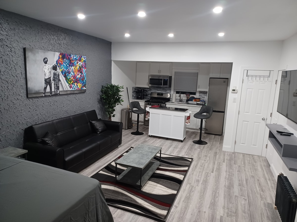 Relajate en este elegante alojamiento de Airbnb para no fumadores en el corazón del sur de Brooklyn, cerca de todo lo que necesitás para una estadía perfecta en Nueva York. Disfrutá de un espacio tranquilo y privado, perfecto para un máximo de 2 huéspedes que buscan comodidad y conveniencia. A 🚗 20 minutos del aeropuerto JFK 🚇 Cerca del subte, restaurantes, tiendas y playa 🗽 De 30 a 40 minutos de Manhattan 🎶 Disfrutá de un sistema de sonido de techo 📶 Wifi de alta velocidad TV 📺 inteligente Estacionamiento 🚙 gratuito en la calle cerca