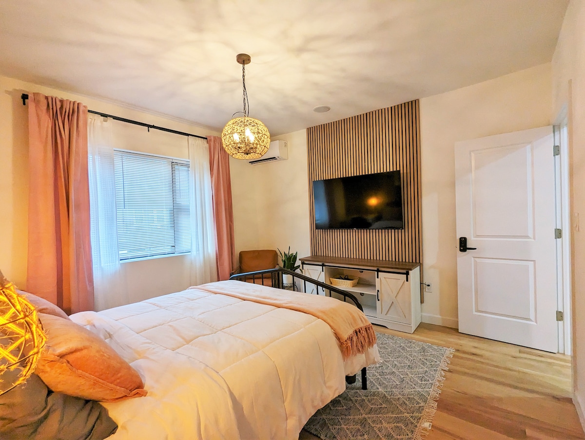 ✨ ¡Nuevo baño estilo spa! ✨ Recién renovado con un sistema de ducha de 3 funciones, calefacción en el piso y termostato exclusivo. En el corazón del sur de Brooklyn. Este moderno y espacioso departamento se encuentra en una cuadra tranquila y arbolada, a pocos pasos de restaurantes, tiendas y tránsito importante. Privacidad total y acceso fácil. Características Y servicios - Iluminación ambiental - Amplio espacio en el armario. - Pisos con calefacción y unidades divididas - Cama king firme + cómodo sofá cama - Cocina completa. - Lavadora/secadora en el lugar - 2 televisores inteligentes.