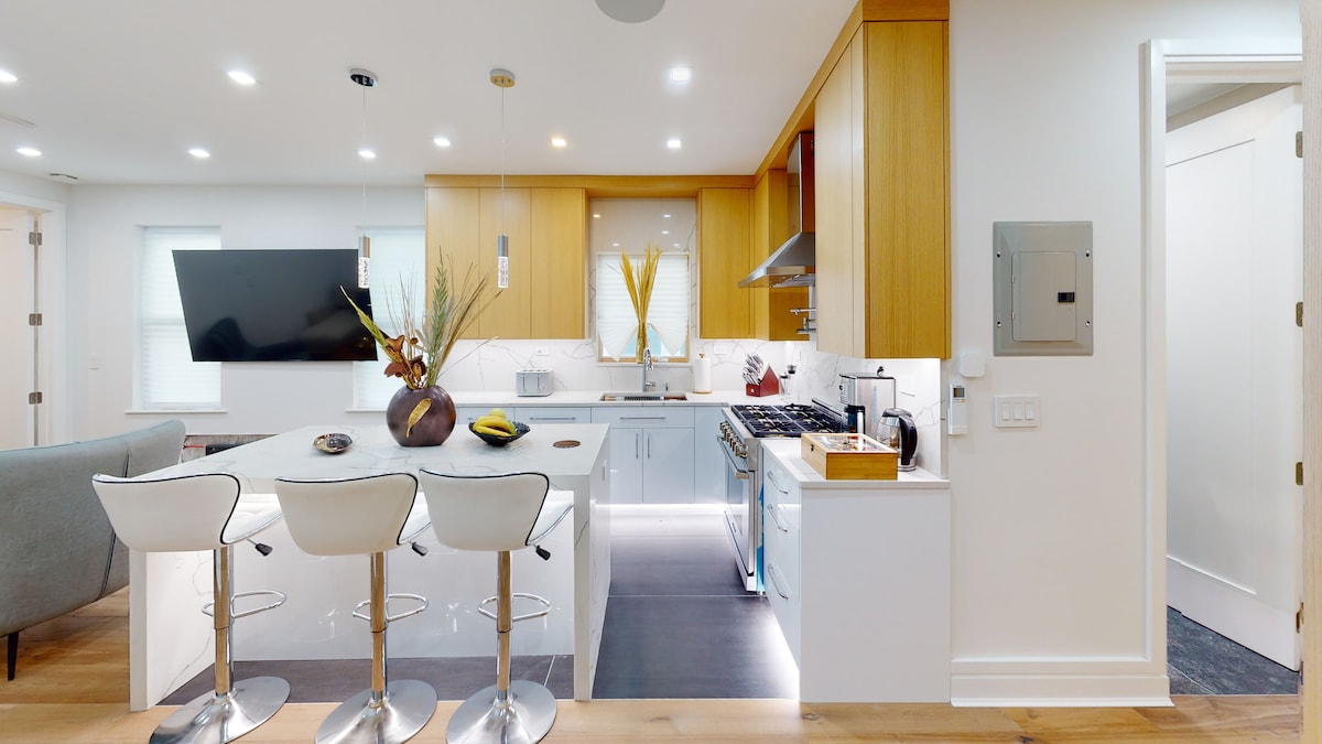 Bienvenido a tu elegante hogar lejos de casa en el corazón de Midwood, Brooklyn. Esta suite de dos dormitorios, cuidadosamente renovada, combina acabados modernos, comodidad de estilo hotelero y todos los elementos esenciales para una estadía perfecta, ya sea que estés aquí por trabajo, diversión o aventuras en la ciudad. Disfrutá de un espacio luminoso y bien equipado con ropa de cama lujosa, wifi de alta velocidad, una cocina totalmente equipada y artículos de tocador de spa. Estamos en las instalaciones si es necesario, respetando plenamente tu privacidad.