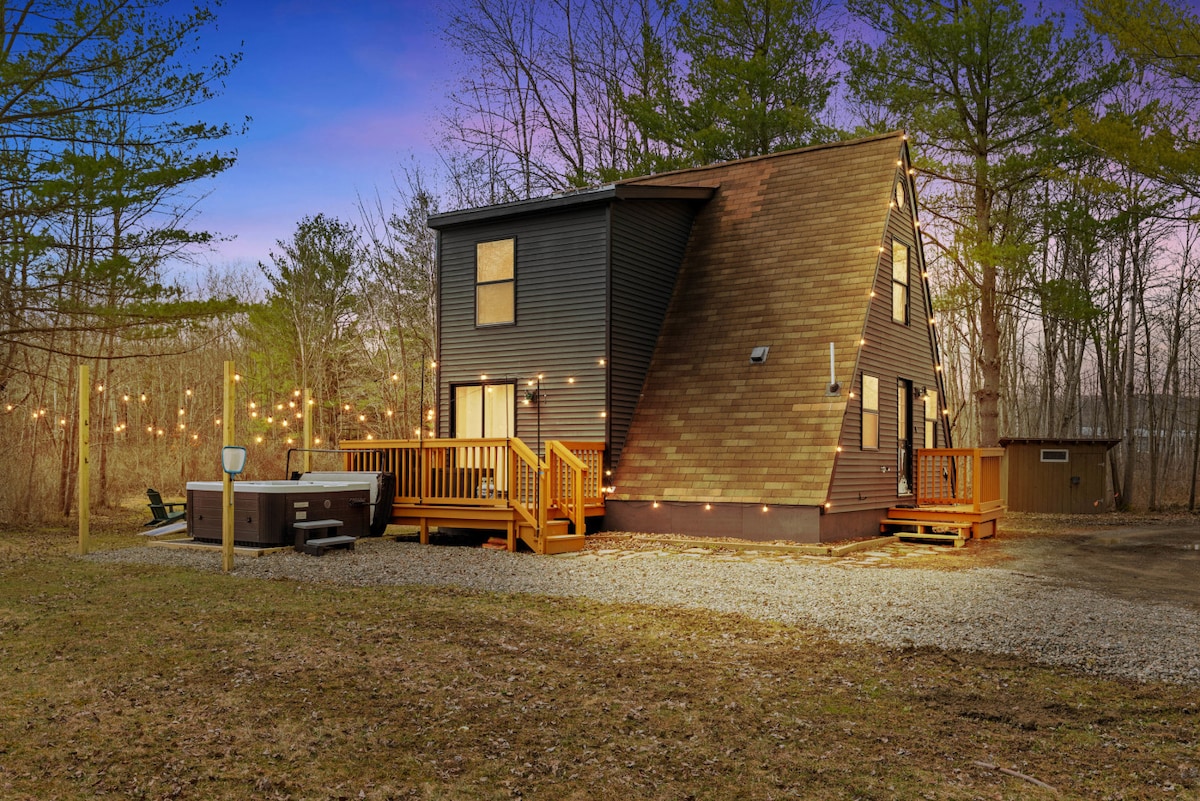 ¡NUEVO! Retiro en cabaña con chimenea, sala de juegos y jacuzzi
