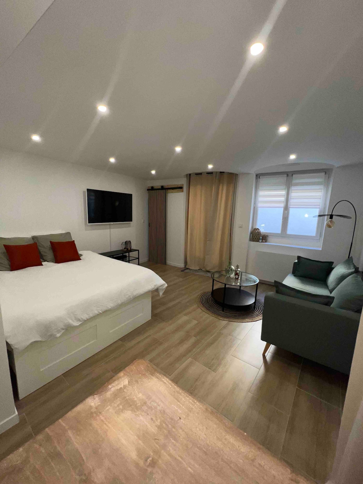 Venga a alojarse en nuestro estudio, idealmente situado en el centro de la ciudad, tranquilo (a 250 metros de la estación de tren, a 150 metros de las paradas de autobús gratuitas). Se alojará en un estudio de 29 m², situado en el 1er piso en una residencia de 4 viviendas, que consta de una sala de estar con su sala de estar y cocina, amueblada y equipada, una zona de dormitorio separada por una claustra, un baño con ducha y aseo. Vivienda totalmente reformada e insonorizada. Acceso a un patio compartido (entre los 4 alojamientos), con zona de relajación.