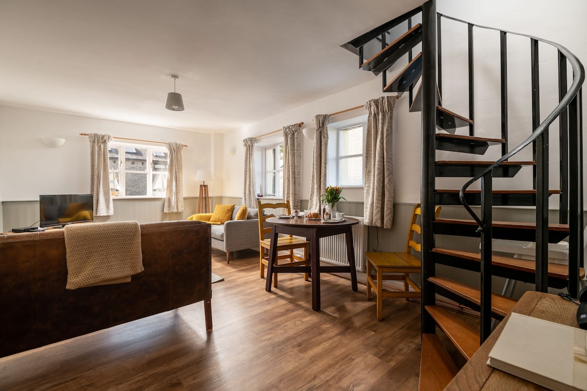 Estancias largas de fin de semana/semanales. Elegante casa adosada independiente con 2 zonas de terraza con impresionantes vistas al río sin obstáculos. 2 dormitorios con 2 camas tamaño king o 1 cama tamaño king y habitación doble, junto con escritorio y wifi superrápido. Cuarto de ducha con calefacción por suelo radiante, cocina/comedor y sala de estar con estufa de leña. Gran lugar para explorar los alrededores, incluidos Dartmouth, las playas y el campo. 2 propiedades del National Trust y el ferrocarril de vapor cerca. Reservas para un mínimo de 2 noches.