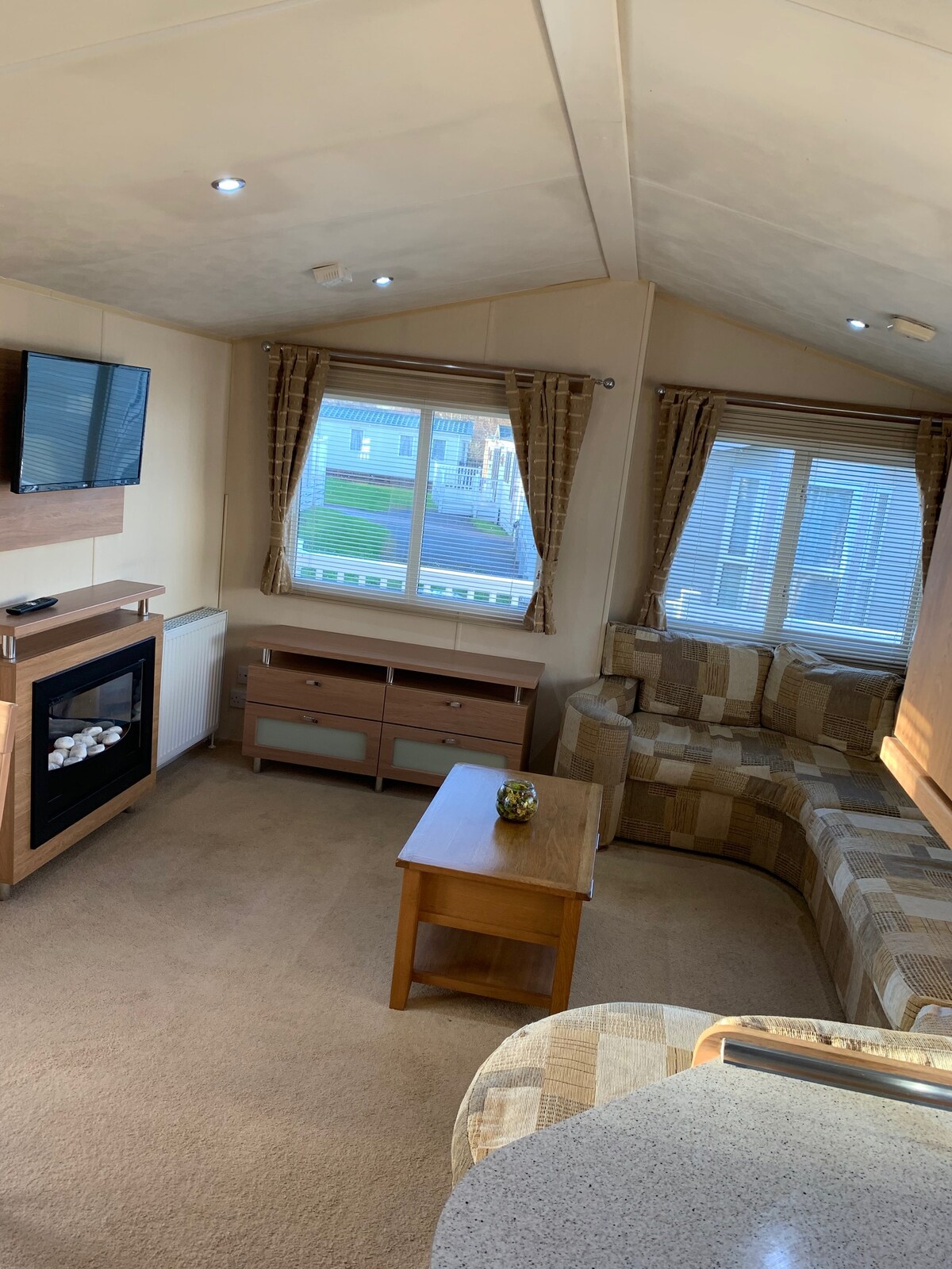 Cómodo chalet de 2 dormitorios para alojar a 4 personas. Sofá cómodo y lo suficientemente largo para 1 adulto adicional (por acuerdo separado). ROPA DE CAMA PROPORCIONADA PARA LAS CAMAS DOBLES E INDIVIDUALES, TOALLA DE MANO, GUANTE DE HORNO Y ALFOMBRILLA DE BAÑO. * Trae tus propias toallas o pídelas en la lavandería por 8 £ por paquete * La electricidad se mide. Por favor, trae monedas de 1 libra. Obviamente, el coste es mayor en invierno que en verano. Precio actual de verano alrededor de 2-3 £ al día, invierno 4-5 £ al día cuando se usan todos los calentadores.