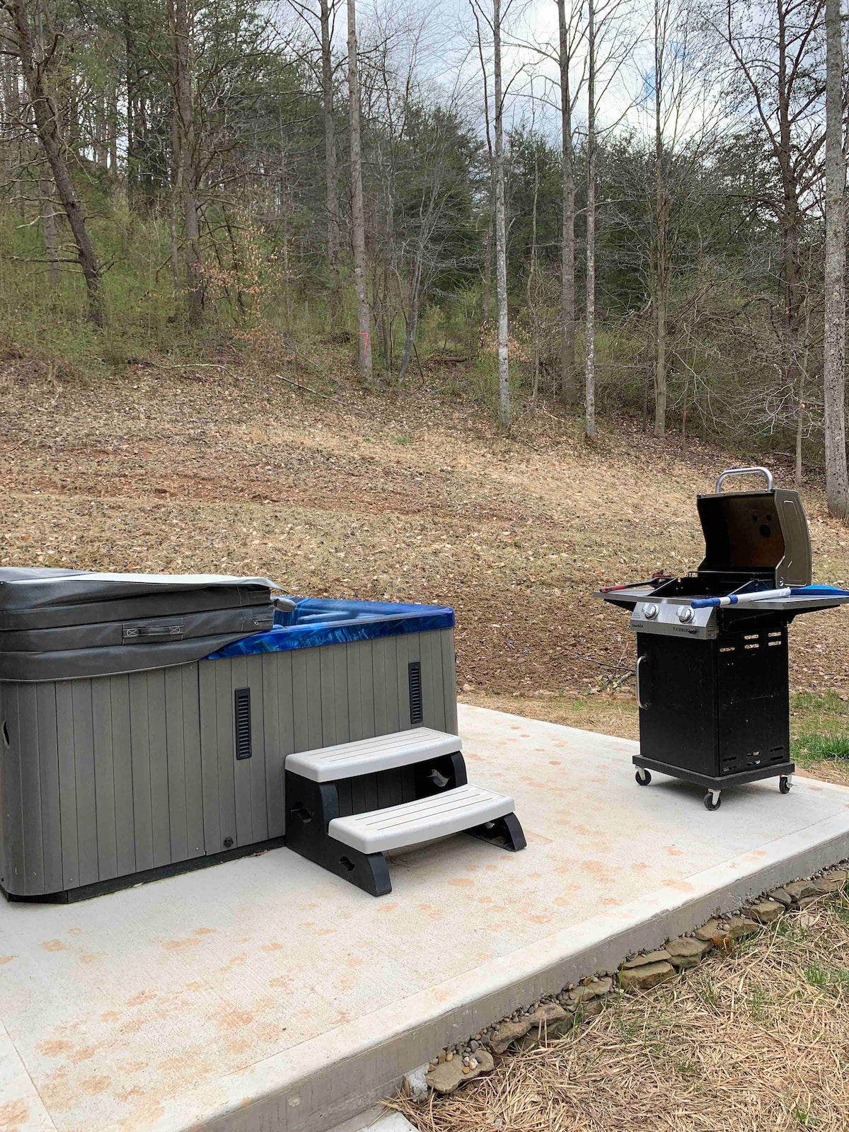 La cabaña tiene un loft con una cama doble y una cama individual. Hay una cama tamaño queen, baño completo y cocina pequeña (microondas, cafetera y mininevera) en el nivel principal. Los huéspedes pueden usar la cocina exterior que tiene nevera completa, gas, carbón vegetal y parrilla plana. También hay mesas y ducha exterior en la terraza de 15x40'. El fogón es genial en esas noches frías de montaña. 10-20 minutos a la histórica Belpre, Marietta OH y Parkersburg WVA. Nota: Hay servicio de telefonía celular en la cabaña, pero NO hay wifi. La televisión es solo una antena.
