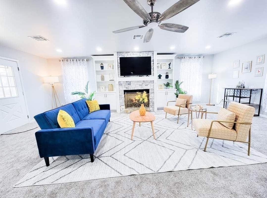 Escapate a la comodidad, el estilo y el lujo en este dúplex de 2000 pies cuadrados en el sur de Tulsa, bellamente renovado, perfecto para familias, grupos o estadías prolongadas. • Patio trasero privado con patio, parrilla y asientos • Televisor Roku de 75” en el living + televisores de 55” en 3 dormitorios • Cama king en el dormitorio principal con colchones de espuma viscoelástica • Cocina totalmente equipada con mesadas de granito y Keurig • videojuegos • Estacionamiento en la cochera + check-in sin anfitrión • W/D • Chimenea eléctrica. • Cuna de viaje y silla para bebés • Se admiten perros (máximo 3, de menos de 36 kg, tarifa de 100 USD)