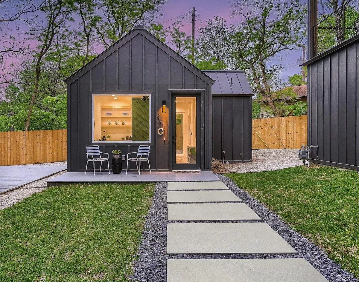 A well-designed, quiet, and surprisingly spacious Tiny Home in Austin’s iconic 78704. Enjoy live music, coffee, breweries, vintage shops, hiking, and more just moments away. With fast Wi-Fi and a comfortable bed to recharge after concerts, it’s perfectly located for both remote workdays and nights out at Austin’s legendary venues, or whatever brings you to Austin! Thoughtful touches and bright natural light make it an effortless, relaxing stay.