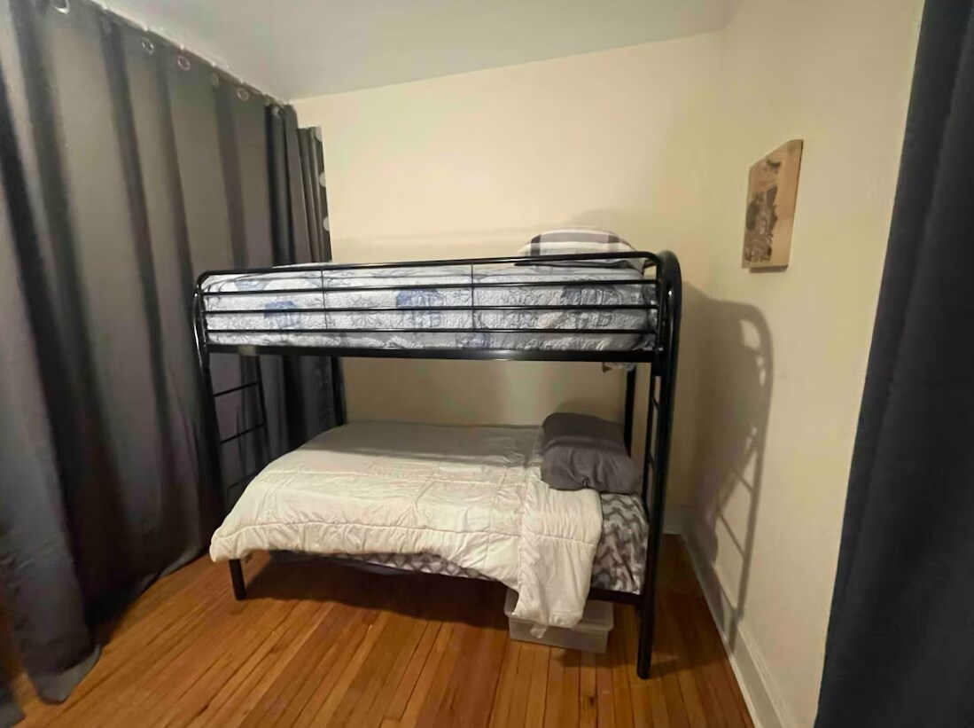 Bienvenido a nuestra acogedora vivienda. Equipado con un colchón doble de tamaño, escritorio y armario. Tenemos un patio delantero, un patio trasero y el parque Roberto Clemente al otro lado de la calle. Estamos a 2 minutos. Desde el metro norte y a 10 min. Viaje en autobús al tren de la ciudad de la MTA. ¡No dudes en casa y pregúntame cualquier cosa!