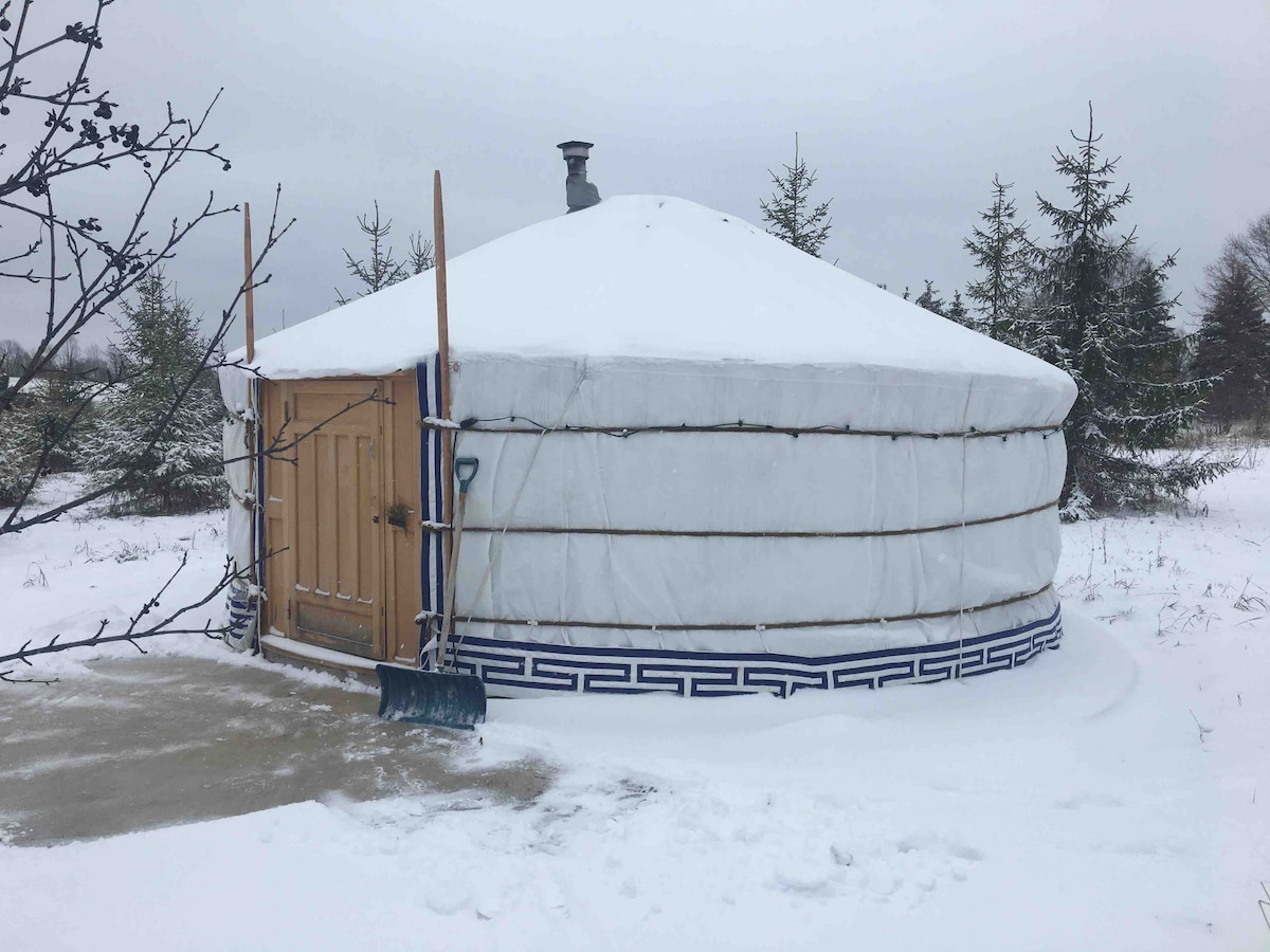 La yurta se encuentra en nuestra granja biodinámica de 200 acres en la hermosa West Grey. Los huéspedes pueden caminar por la propiedad y disfrutar de la naturaleza. Un espacio acogedor y aislado disponible todo el año. Este alojamiento es rústico y cuenta con instalaciones sanitarias recién construidas cerca. También se ofrece una experiencia en una granja. Las pistas de raquetas de nieve o esquí están cerca o en la granja. El spa (jacuzzi y sauna) está disponible para reservas privadas para 2 personas por una tarifa adicional de $125
