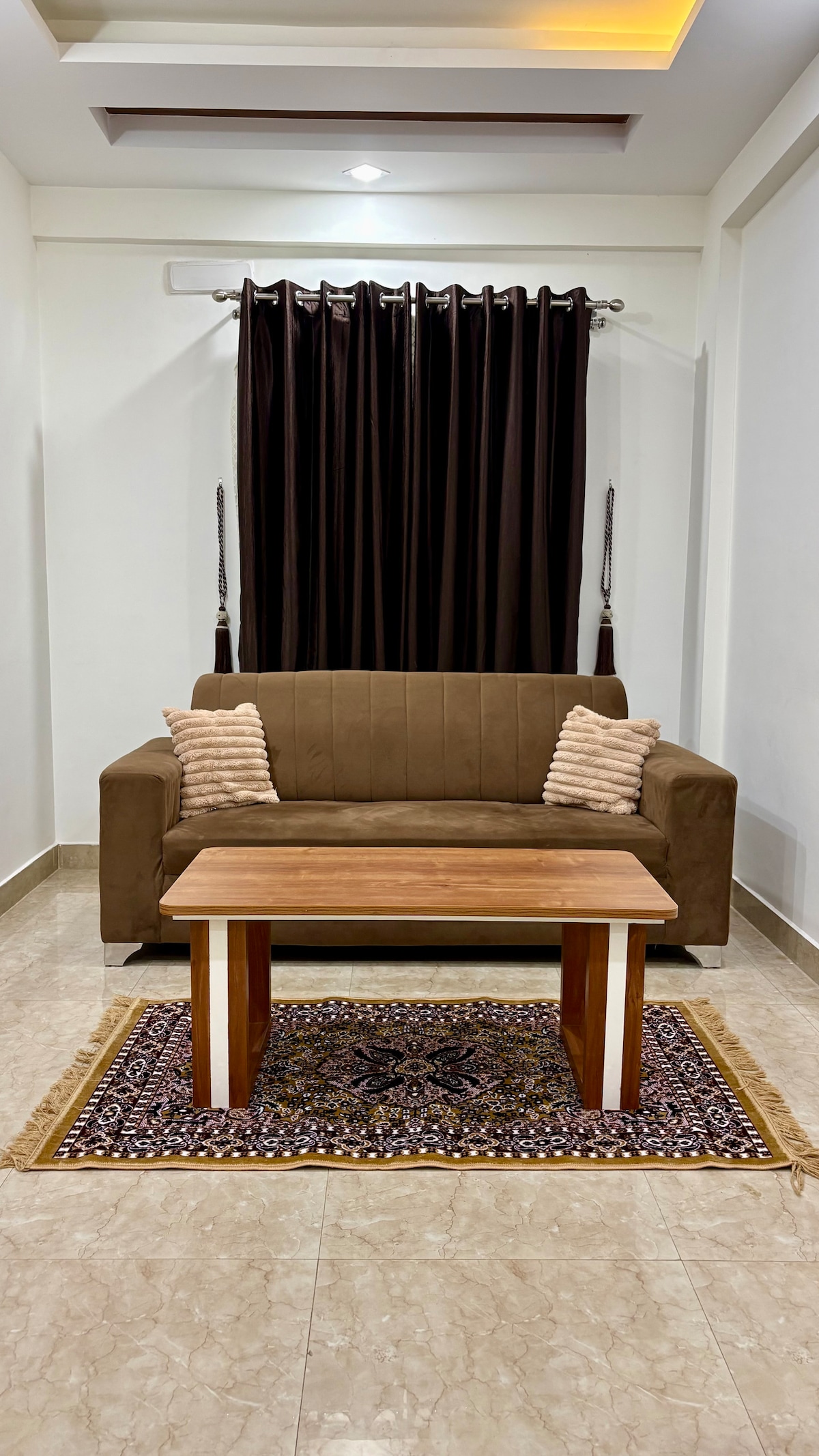 This one bedroom apartment is the perfect home away from home. It offers easy access to local attractions. Bedroom: Well-appointed bedrooms featuring comfortable bedding for a restful stay. AC is in the bedroom. Living Area : The spacious living area is filled with natural light, featuring stylish decor and comfortable furnishings. Kitchen: For those who love to cook a fully equipped kitchen with modern appliances and a complete set of utensils for preparing home-cooked meals.