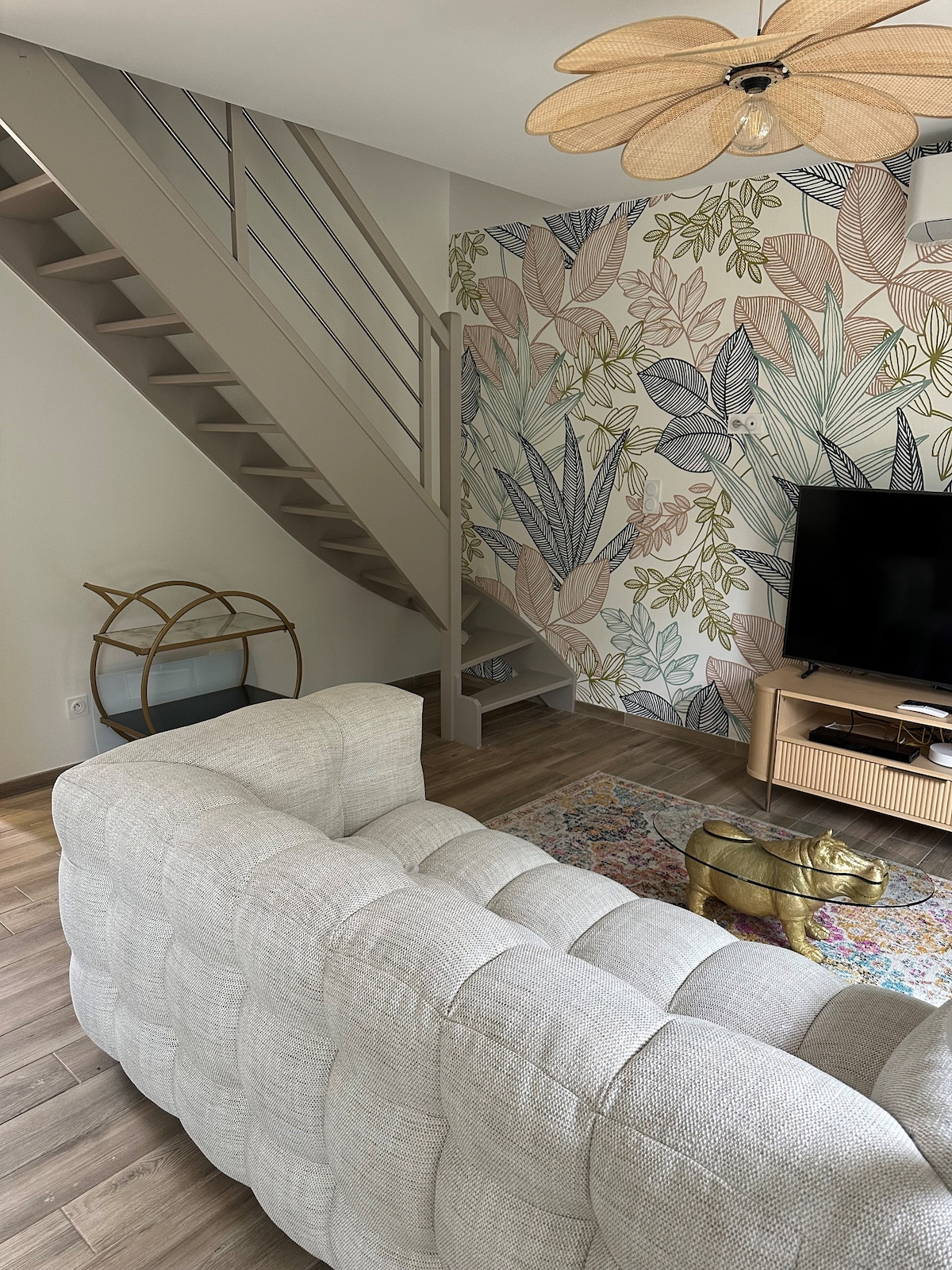 Suite élégante avec entrée indépendante, pensée pour un séjour confortable et sans contrainte. Vous découvrirez un studio moderne et chaleureux, mêlant bois naturel et éclairages doux pour une atmosphère immédiatement agréable. Literie haut de gamme, épaisse et confortable pour une bonne nuit de sommeil, salle d’eau soignée, Wi-Fi rapide, arrivée autonome : tout est réuni pour que vous vous sentiez bien dès votre arrivée, que ce soit pour une escapade à deux ou un déplacement professionnel.