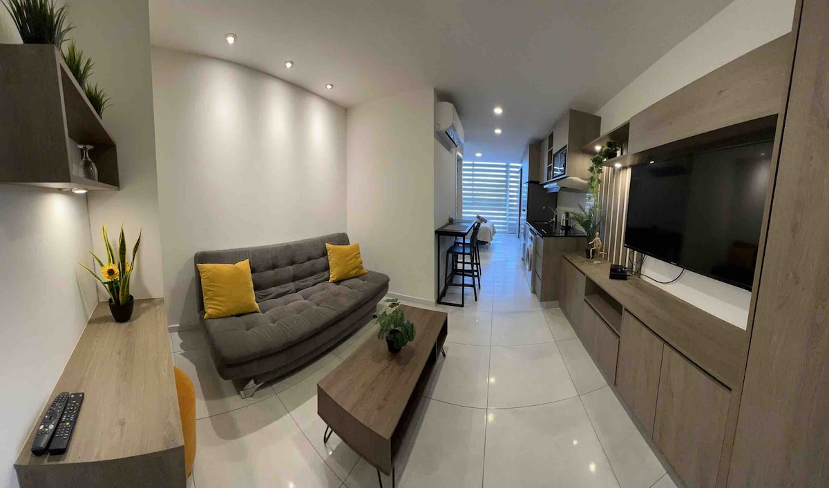 Disfruta de la sencillez de este departamento tranquilo y cerca de la zona empresarial equipetrol. Comodo y equipado. El edificio cuenta con una pequeña piscina, co-work, terraza con increibles vistas y estacionamiento segun disponibilidad con seguridad las 24hrs. Ademas el departamento cuenta con Wi-fi, Tv smart, pequeño balcon, cocina, horno electrico, lavadora y mucho más. Ideal para personas solas o parejas. Esta cerca de cafeterias, farmacias, hospitales, mercados, supermercados y malls.