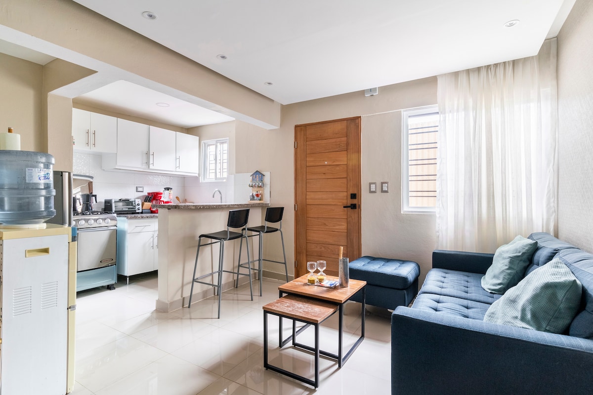 Disfruta de un Penthouse moderno con terraza privada, a solo 10 minutos del centro. Perfecto para ejecutivos, parejas o nómadas digitales que buscan comodidad, seguridad y estilo. ¡Tu escape ideal en Santo Domingo Oeste te espera! Ubicado en un edificio nuevo con seguridad 24/7, este alojamiento en el 4to piso (sin ascensor) ofrece tranquilidad, diseño contemporáneo y una terraza privada perfecta para relajarte o trabajar. ¡Reserva ahora y vive la experiencia!