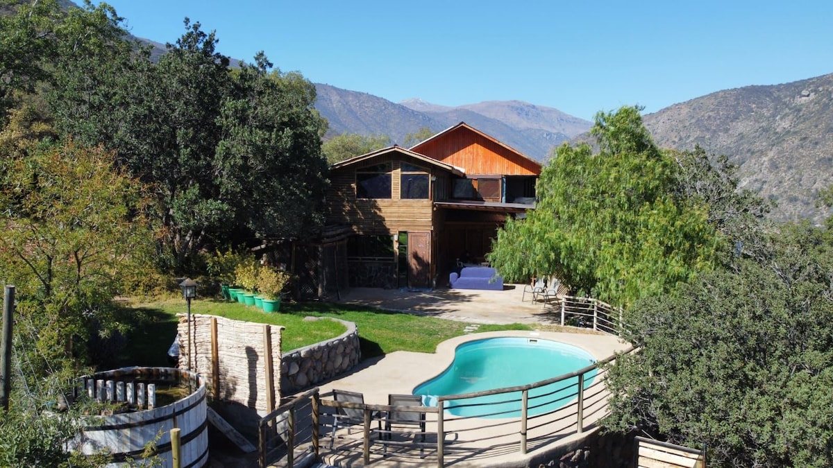 Bienvenido a nuestro Lodge en la naturaleza, un refugio en la precordillera, perfecto para escapar de la rutina. Despiértate con aire fresco y el canto de aves, disfruta de viñedos cercanos. Relájate en la piscina con una hermosa vista. Disfruta de una experiencia única sumergiéndote en una tinaja de agua caliente bajo el cielo estrellado (valor adicional) Entorno natural ideal para meditar en la pirámide y experimentar el bienestar de nuestra cama de cuarzo. Descubre la tranquilidad y paz.