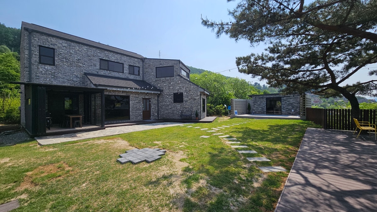 [힐링앤]복층 독채/단독 바베큐장&불멍&정원/애견동반/춘천IC 5분/25년신축