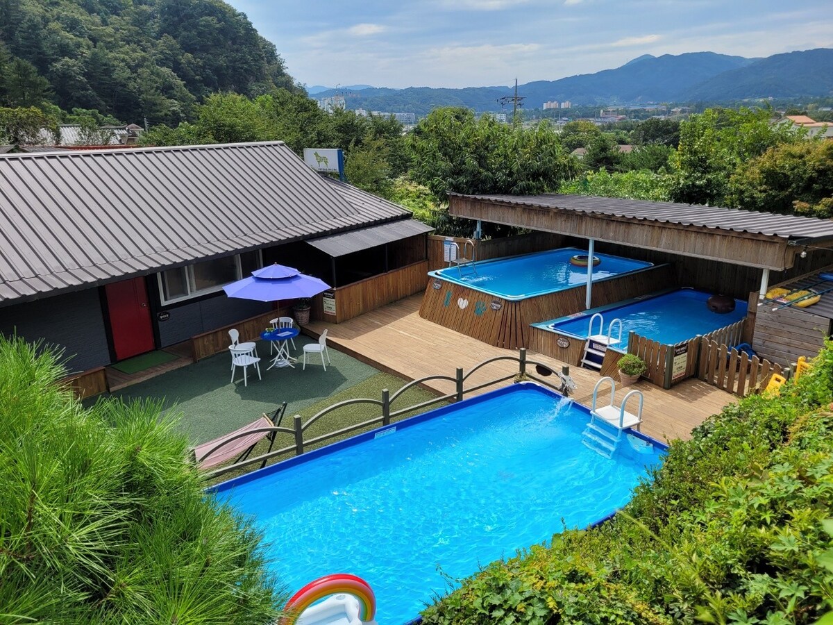 초하B동, 3층단독풀팬션,야외온수수영장,2층온수자쿠지무료.2박5%.3박10%4박15%할인,