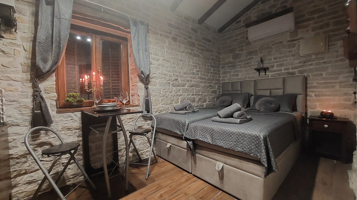 Esta encantadora villa de 3 unidades está ubicada en Buković, una parte de la ciudad de Benkovac, que está a 36 kilómetros de la histórica ciudad de Zadar. La propiedad cuenta con tres unidades y su zona común, la hermosa terraza y amplia piscina. Cada una de las unidades de la propiedad ofrece una cama doble y una cama individual adicional, si es necesaria, por lo que es un lugar perfecto para 9 huéspedes que aprecian una dosis de privacidad en su alojamiento.