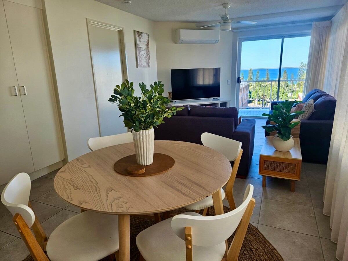 En una de las ubicaciones más buscadas de Sunshine Coast, este sensacional apartamento de planta completa cuenta con increíbles vistas panorámicas al mar y es perfecto para una escapada familiar tranquila. Pasea hasta Kings Beach para nadar en el mar o en la piscina de agua salada, come algo en el club de surf local o en una de las cafeterías boutique, mira a los niños o nietos jugar en el parque infantil o en el parque acuático o da un paseo panorámico a lo largo del paseo marítimo costero de 25 kilómetros y empápate de las increíbles vistas.