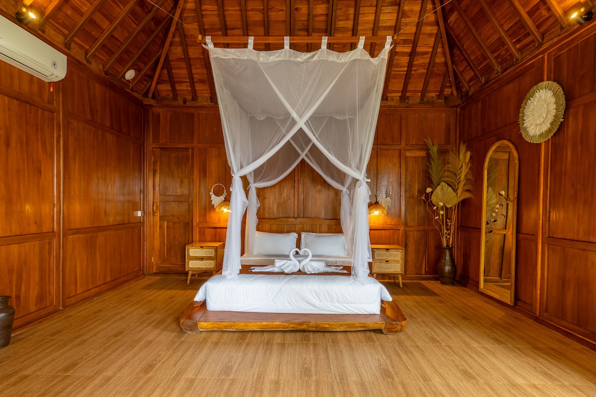 Upgrade to our Deluxe 1BR Villa for the ultimate North Bali retreat! Step into our 45 m² freestanding wooden villa, just steps from the shoreline & beachfront pool. -5×5m bedrooms with king-size bed -For 2 adults and 1 child -Ensuite walk-in shower -Air-conditioning -Dedicated work desk & free Wi-Fi -Stocked minibar & in-room safe -Porch with lush garden & enhanced ocean and pool views Lounge on your porch or sunbed, then plunge into our two beachfront pools than savor the on site restaurant