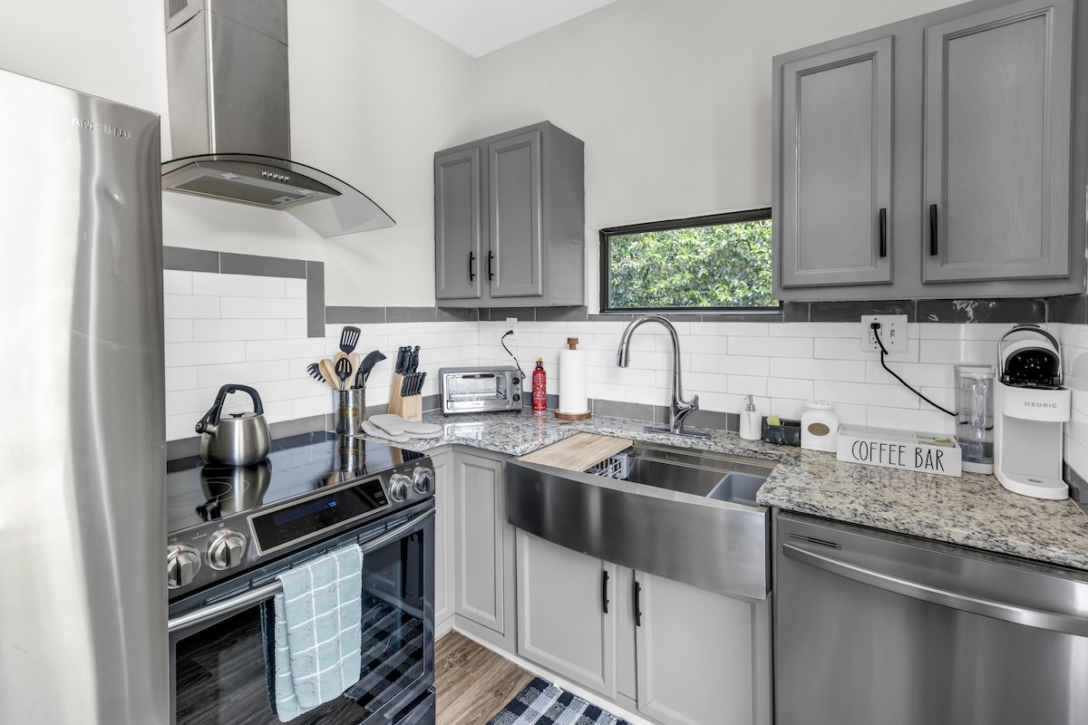 Este nuevo estudio está a menos de 1,6 km de Canton Street y cerca de lugares para bodas. Amueblada con acabados de lujo, esta casa de huéspedes estilo estudio es cómoda y práctica. Está separada de la casa principal con entrada privada y plaza de aparcamiento fuera de la calle. Camina hasta el histórico Roswell o disfruta de los parques y senderos cercanos. Disfruta de una gran noche de sueño en la cómoda cama tamaño queen. Sitio de sobra para todos con acceso a Internet de alta velocidad. ¡La cocina y el baño están equipados con elementos esenciales para tu uso!