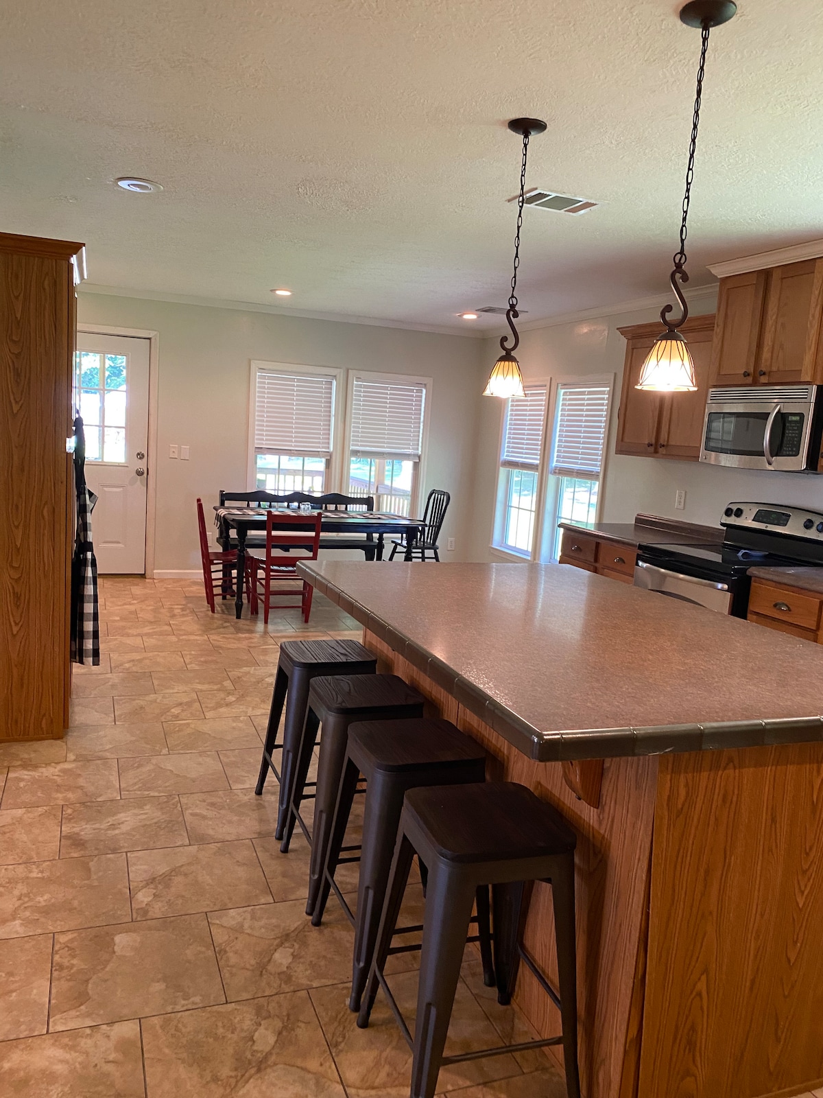 La “Whatley House” recibe a los huéspedes con 3 porches. 4 dormitorios grandes y 2 baños. El dormitorio principal cuenta con una cama tamaño king y un hermoso baño privado. Otros dormitorios incluyen un total de 3 camas de tamaño completo, una cama para niños pequeños y un sofá cama. Sala de estar totalmente amueblada. Cocina grande con todas las herramientas necesarias para preparar comidas. 2 hermosos espacios de comedor. Lavadero con lavadora y secadora. Sala de juegos con mesa de billar y zona de descanso. A 8 millas en auto de la Universidad de Troy y del centro de Troy, AL.