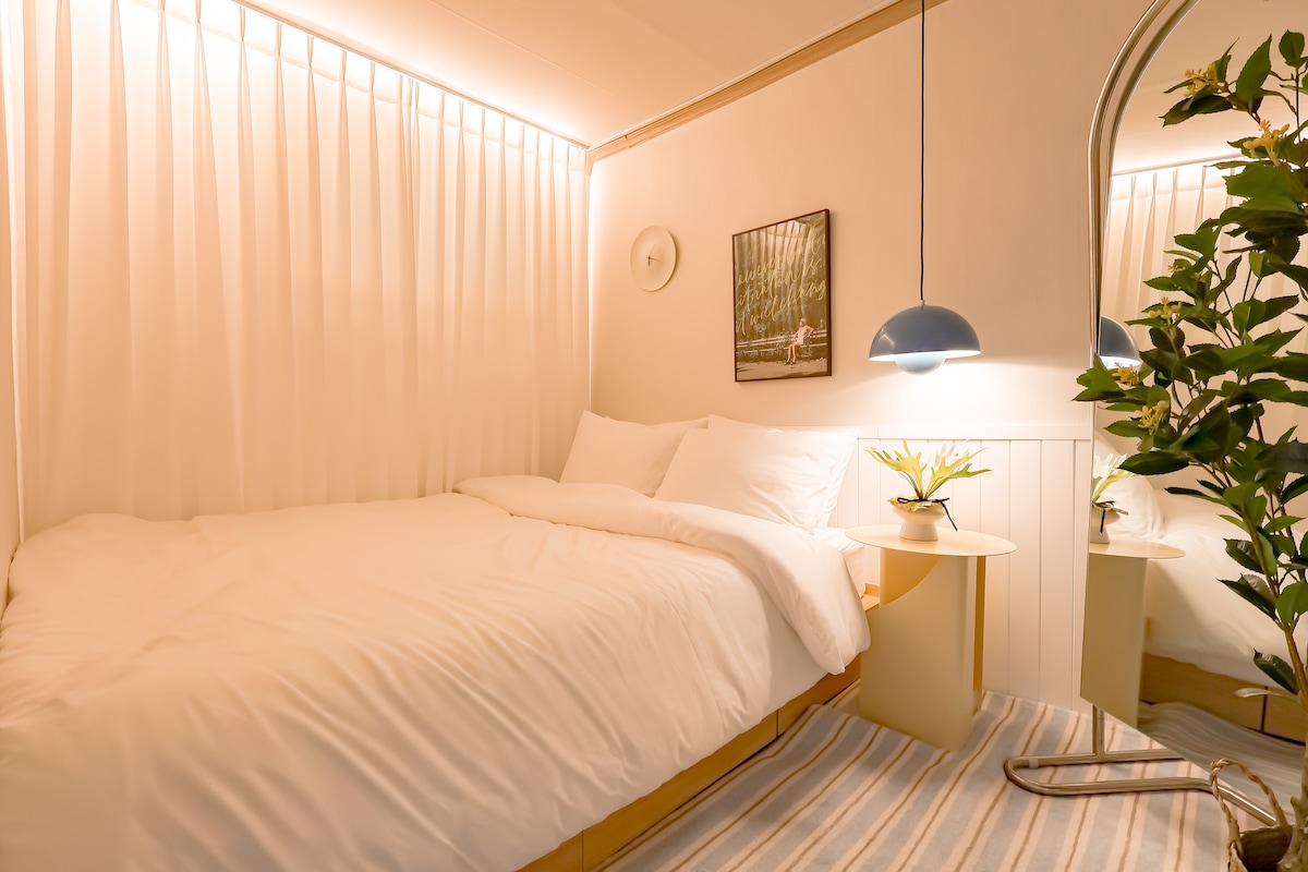Las "COSAS NORMALES" van en contra de la normalidad del día a día. Quiero proporcionar una falta de familiaridad cómoda a través de este lugar lleno de cosas ordinarias que se pueden ver fácilmente en la vida cotidiana. Durante el día, siente la brisa fresca y la cálida luz del sol que entra por la gran ventana. por la noche, relájate escuchando tu música favorita. Llegada: 3 pm Hora de salida: 11:00 a. m. Recomienda una reservación para 2 personas. (Configuración de habitación con cama doble, 2 camas no disponibles) 3 personas: juego de ropa de cama en un sofá cama en una habitación pequeña
