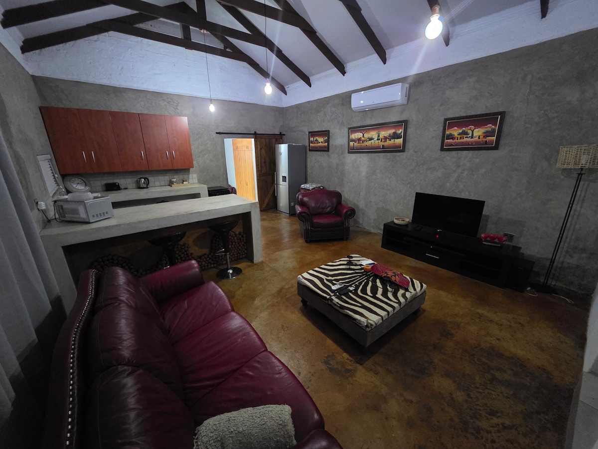 La casa de huéspedes está en el paso de los buscadores de oro y tiene hermosas vistas a la reserva natural privada (MACNR). El río Spekboom está a veinte minutos a pie de la casa de huéspedes. Lo primero que notarás sobre la casa de huéspedes es su espaciosa cocina abierta, comedor hasta la sala de estar. Hay tres dormitorios. El dormitorio principal está equipado con una cama tamaño queen y baño privado. El segundo dormitorio tiene una cama doble y el tercer dormitorio dos camas individuales.
