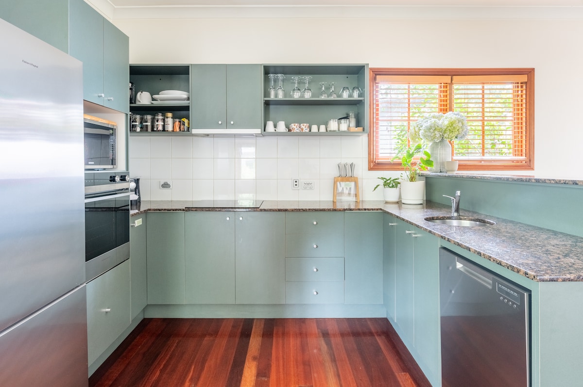 ¡A solo 250 metros de las arenas de la icónica playa Burleigh! Esta impresionante cabaña de playa está rodeada de restaurantes, cafeterías y cultura playera. Con tu propia amplia terraza privada inspirada en un estilo tropical, con comedor, sala y área de barbacoa boho playera, podrás relajarte con comodidad y estilo, o usar la cocina totalmente equipada (si puedes resistir la variedad de comida local). Después de un día en la playa Burleigh, ¿qué tal un cóctel en tu propio salón privado?