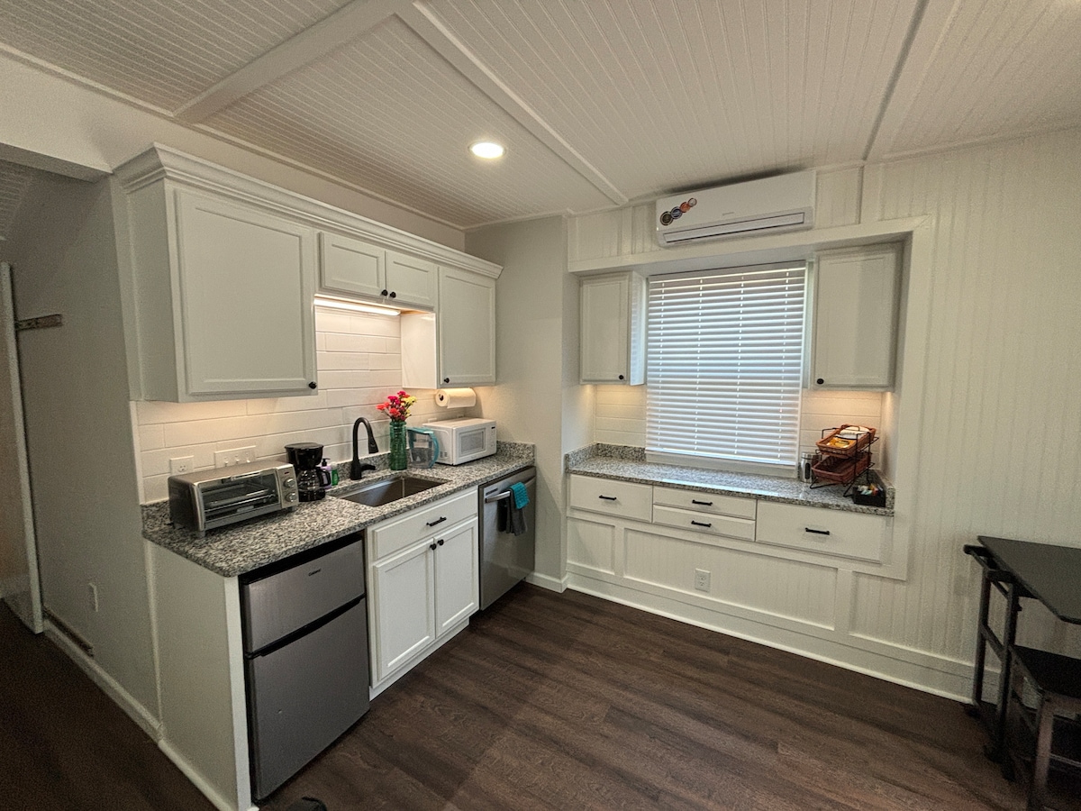 Descansa, relájate y rejuvenece en este alojamiento único y relajante. Esta conversión de garaje privada de 400 pies cuadrados está repleta de comodidades. Bañera de hidromasaje, bidé, sillón de masaje, cama tamaño king con colchón de espuma viscoelástica, TV de 65 pulgadas, cine en casa, wifi de fibra óptica, cocina pequeña, barra de café y té, armario de cedro, iluminación regulable, carga de vehículos eléctricos de nivel 2, estacionamiento en la entrada, acceso codificado, lavandería, 2 toallas de lujo y 2 albornoces de spa. La televisión inteligente y el proyector tienen Hulu, Prime, Apple TV y Netflix para uso de los huéspedes.