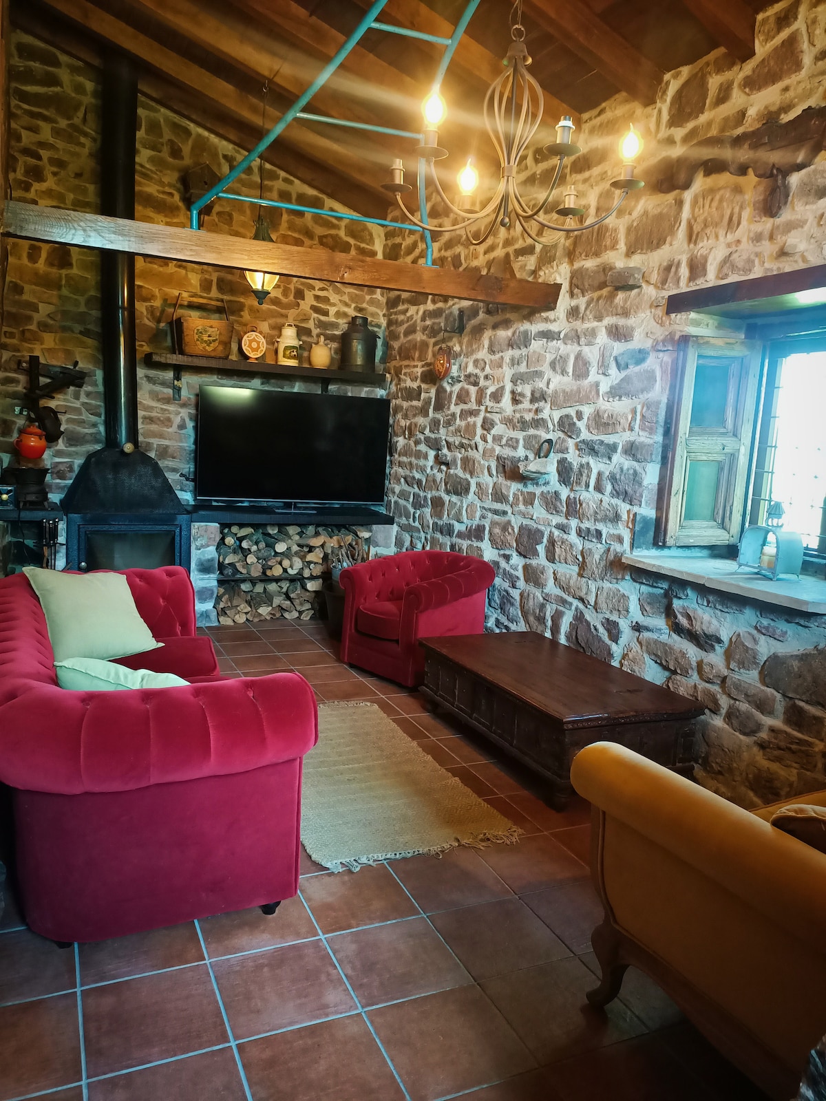 Casa antigua de mampostería de piedra, cuenta con un amplio salón con chimenea y mesa de madera maciza, cocina con todos los electrodomésticos, un baño y un aseo, las habitaciones están en la planta superior y una de las habitaciones tiene chimenea individual. En la entrada hay un gran porche equipado con mesas y sillas. Está ubicada en medio de la naturaleza en el centro del Parque Natural Ojo Guareña, el aeropuerto más cercano está a 80 km (1 hora) y cerca de estaciones de esquí.