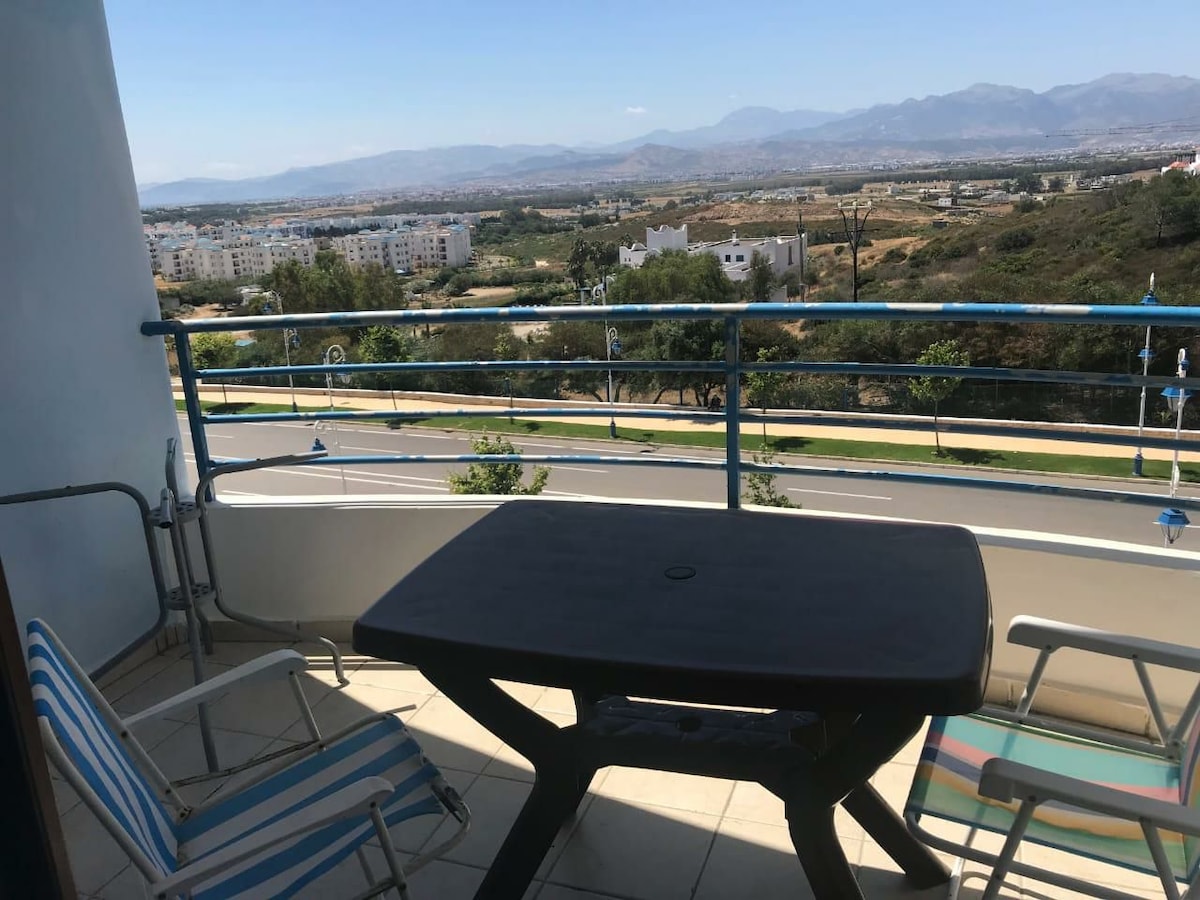 Increíble departamento de 3 camas con todas las comodidades totalmente amueblado con acceso a 7 grandes piscinas, gimnasio exterior, zona de juegos infantiles, estacionamiento privado las 24 horas de seguridad totalmente aislado, wifi gratuito, este apartamento cuenta con impresionantes vistas a la montaña, a poca distancia de la playa, este apartamento está ubicado en el norte de Marruecos.