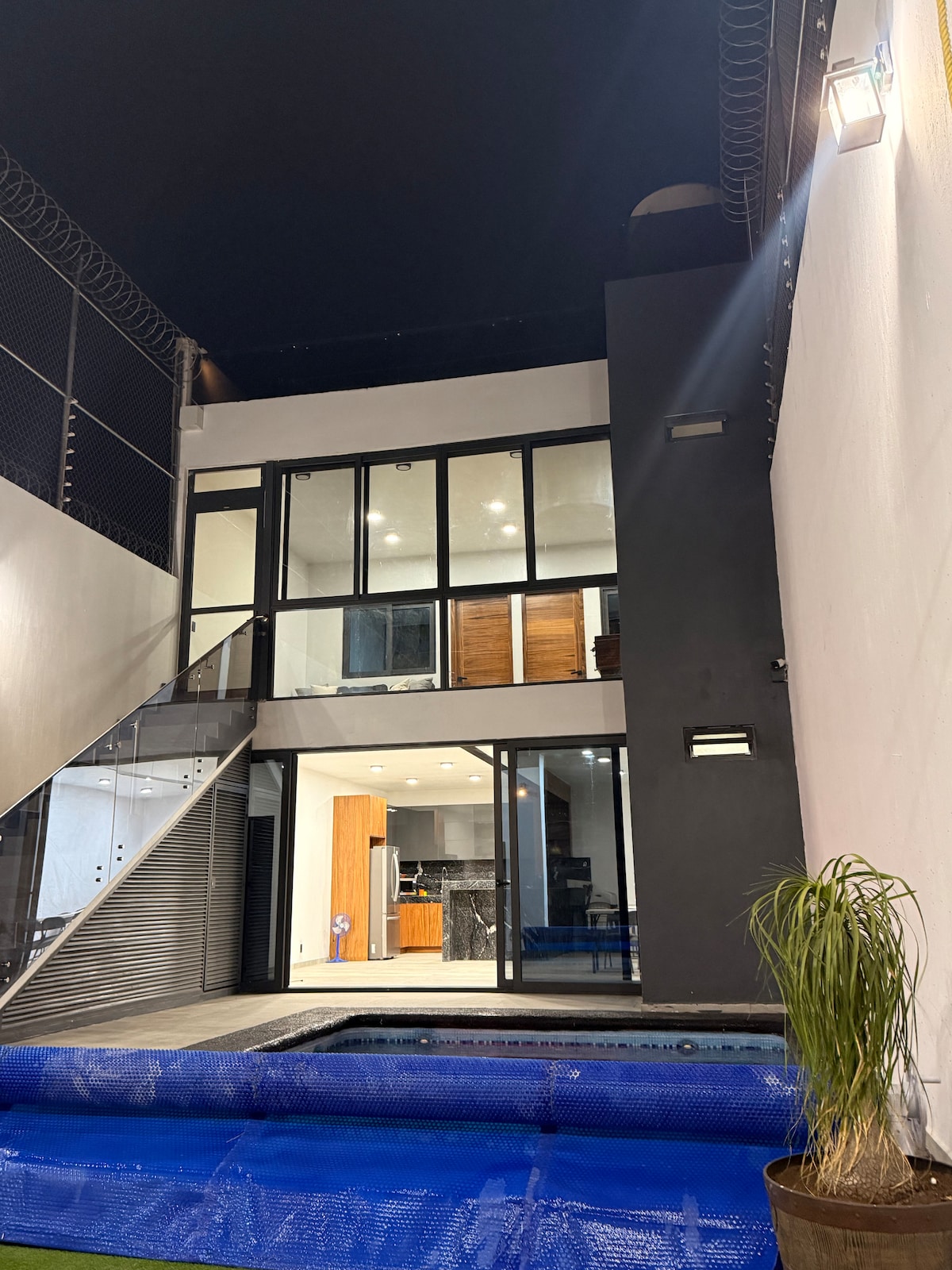 Esta casa se renta por mínimo dos noches... Relájate con toda la familia y amigos en este alojamiento donde la tranquilidad se respira. Cuenta con alberca climatizada, Jacuzzi al aire libre en terraza, cocina equipada, área independiente con asador y barra bar, mas una segunda terraza en planta alta. Esta se encuentra en un coto privado a 45 min. de Guadalajara, La Noria de los tres reyes área la reserva, a 70 mts. de la laguna, el ambiente es familiar y tranquilo