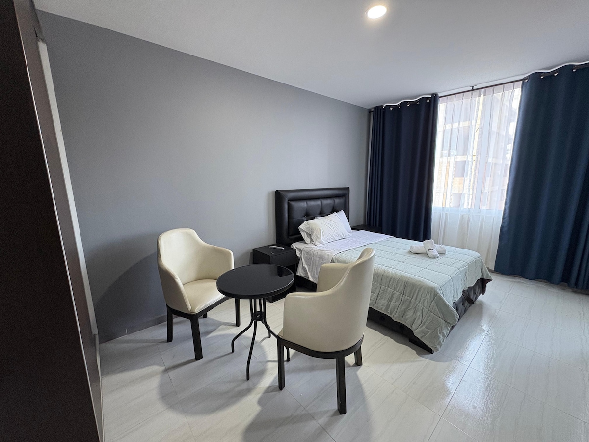 Descansa y disfruta en este moderno monoambiente, diseñado para brindarte confort y tranquilidad. Ubicado en una zona privilegiada, este espacio cuenta con todas las comodidades necesarias, incluyendo Smart TV, WiFi de alta velocidad, lavadora propia. Además, tendrás acceso a piscina (previa reserva), jacuzzi y sauna (pago por uso). Perfecto para viajes de negocios o escapadas a la ciudad. Disponible de parqueos para alquilar en el edificio.