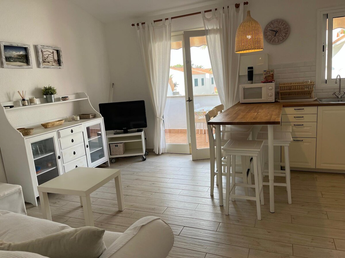 Apartamento muy cerca de la playa esta a 200 metros, zona tranquila con dos habitaciones y sofá-cama,dos baños,cocina con vitrocerámica,lavavajillas etc.. lavadero,patios privado con terraza y barbacoa, gran zona comunitaria con piscina,pinos y parque infantil a cuatrocientos metros puerto deportivo y zonas comerciales,ideal practicar buceo,montar caballo,senderismo,bicicleta