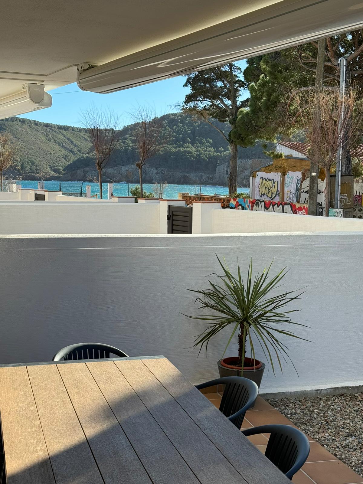 Locación mínimum 5 días (fuera de verano) y del sábado al sábado en julio y agosto. Este magnífico apartamento está ubicado en un edificio de solo 3 apartamentos en primerísima línea de la playa Cala Montgó. Tiene 40 m2, tiene 2 habitaciones (1 cama grande y 1 litera ) y 1 baño. El menjador, cocina y terraza tienen una vista preciosa del mar. Esta equipado del Wi-Fi y aire acondicionado. Hay un refugio cerrado para las bicis.
