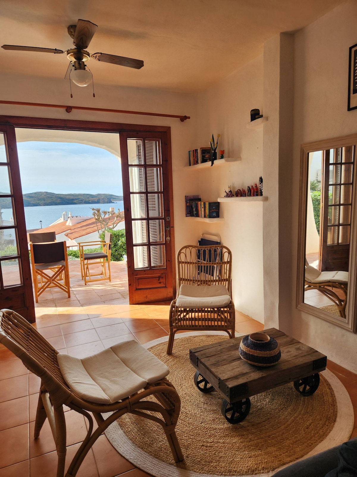 Somos unos enamorados de Menorca, y nuestra casa no es más que un reflejo de todo lo que ofrece esta maravillosa isla: preciosas vistas al mar, tranquilidad y unas vacaciones inolvidables con la familia o amigos. Nuestro hogar en Menorca es un apartamento a cuatro vientos. Tiene acceso independiente y exclusivo desde la calle. Está ubicado en una comunidad única, con un gran jardín privado de 4000m2 que llega hasta el mar. La zona que la rodea es reserva marina, ideal para hacer snorkel.