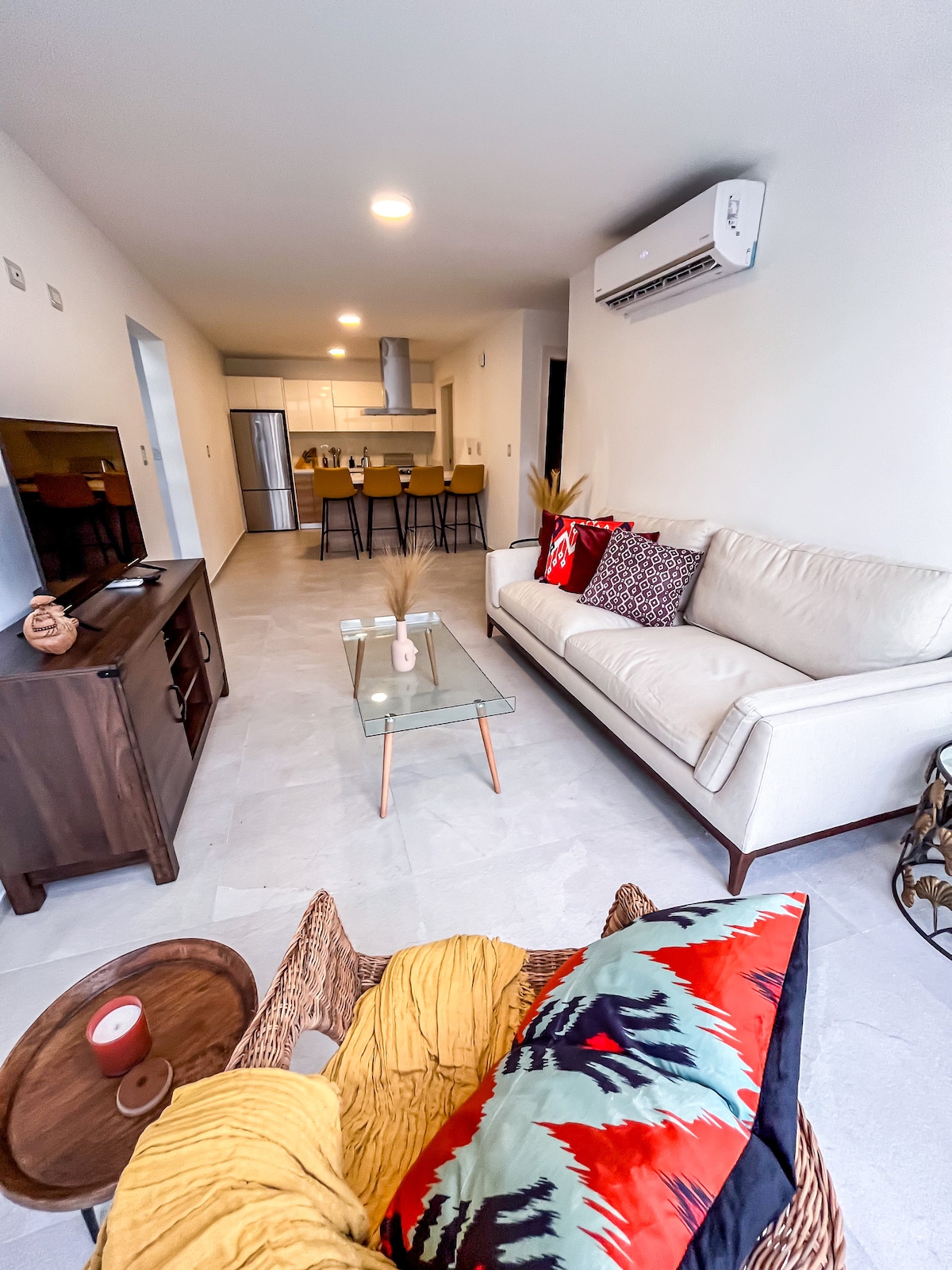 ¡Bienvenido a tu nuevo hogar temporal! Disfruta de una estadía segura, cómoda y estratégica en este acogedor apartamento equipado con todo lo que necesitas para relajarte y sentirte como en casa ✨ Lo que ofrece este espacio: • Ambiente tranquilo, moderno y climatizado • WiFi rápido y Smart TV • Cocina equipada y espacios limpios y funcionales • Estacionamiento privado y entrada segura • Aire acondicionado, agua caliente y área de trabajo