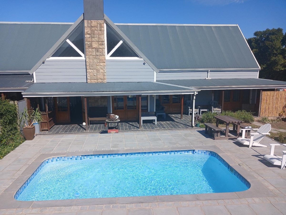 La casa está situada en la granja de vinos y aceitunas Du'SwaRoo, a unos 2 km de Calitzdorp. Está justo al lado de la bodega Du'SwaRoo. Es ideal para una familia y consta de un dormitorio con cama de matrimonio y baño privado, dos dormitorios con dos camas individuales cada uno, un baño adicional con ducha y aseo, una sala de estar y comedor y una cocina totalmente equipada. La terraza es privada con una hermosa vista al valle. Hay wifi gratuito disponible. Se admiten mascotas pequeñas.