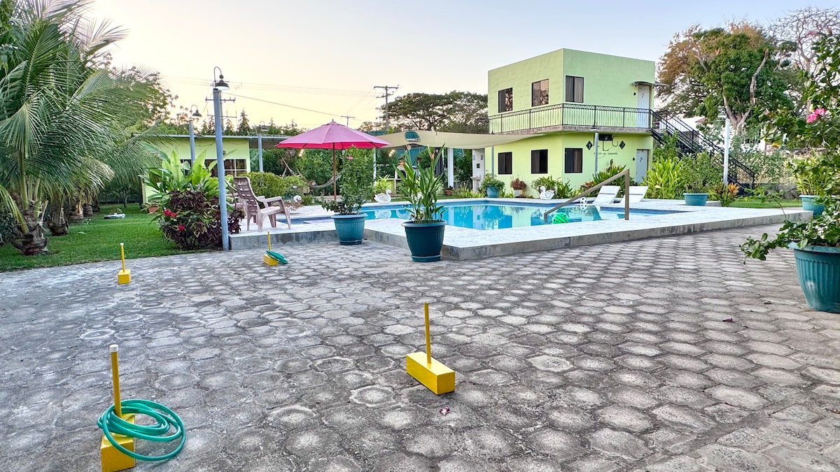 Experience our traditional Re-Imagine Salvadoran Style Villa, nestled in a private neighborhood, w/walking distance to El Palmarcito’s beach & saltwater pools. Perfect for Nature Lovers, away from noise while being close to Surf City's main attractions. With a simple charming semi-open design; this coastal retreat blends indoor comfort with the soothing presence of nature. Ideal for couples, families, friends, surf trips, or remote work, it offers an authentic cultural escape and relaxed vibes!