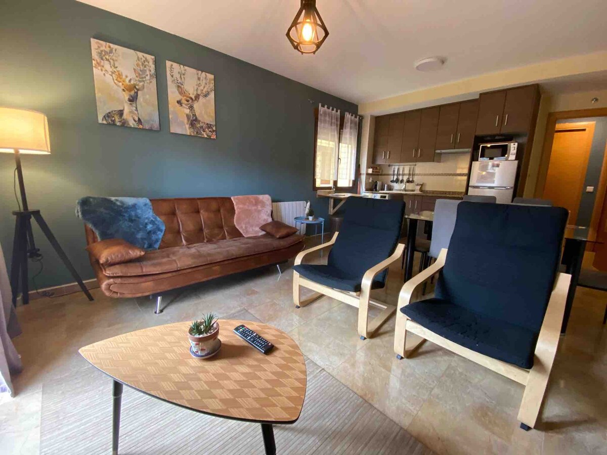 Apartamento tipo estudio, para 2 personas (+1 persona en cama supletoria ) registrado como establecimiento turístico por el Gobierno de Aragón, pensado para descansar, cerca de las pistas de javalambre, rodeado de montañas, bosques, cascadas y con un cielo nocturno espectacular. A un paso de Teruel, Dinópolis, Albarracín. Barranquismo, BTT, senderismo, setas. Terraza común con zona de barbacoa y zona chillout.
