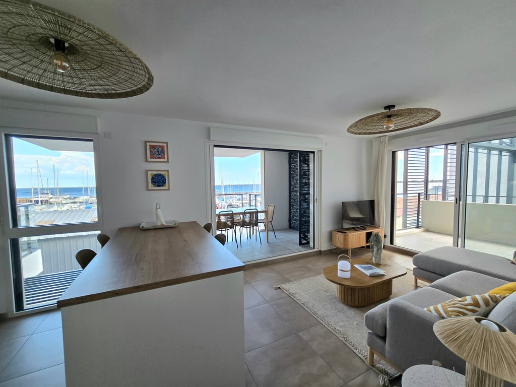 Frente al puerto y al mar, muy cerca del canal real y sus justas, hermoso apartamento luminoso de 34 m2, en el cuarto piso con ascensor, en una hermosa residencia segura, tranquila y a 2 pasos del corazón de la ciudad y de los mercados de Sète. Te seducirá especialmente la vista del puerto y el mar, su ubicación, su equipamiento y su decoración interior. Observá cómo regresan los barcos de pesca con las gaviotas revoloteando por encima.