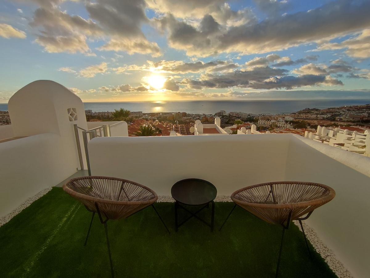 Estudio con jacuzzi y vistas preciosas al atardecer en Tenerife
