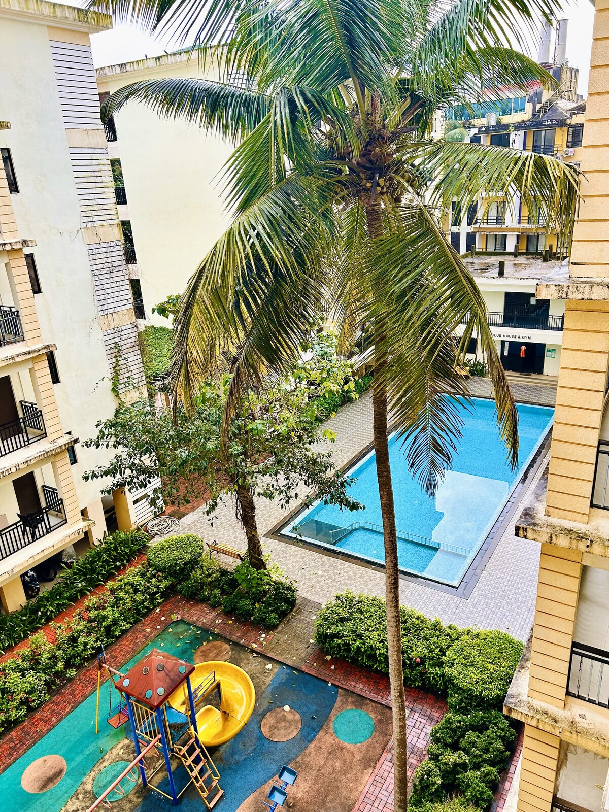 🏡 Away from the city & located 4 km from the airport, our RESORT-STYLE home is away from the crowd. Hello Red-Eye flights! It’s 15-20 minute drive from Bogmalo beach, one of the pristine beaches of South Goa known for peace, great food & beach wear shopping. Several cafés, pizzerias & restaurants serving authentic Goan cuisine dot the neighbourhood. The apartment itself boasts of a resort lifestyle with free amenities for our guests-covered parking, choice of swimming pool, sno