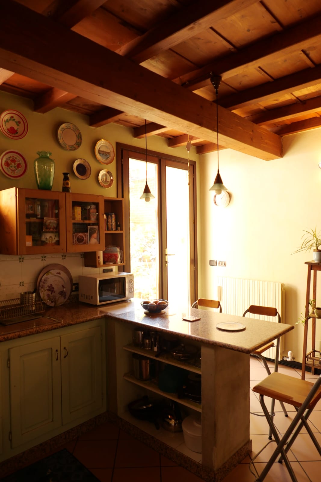 Time slows down at Casa Margherita. This is the ideal location to relax and detox from the day to day stress. You can enjoy long bike rides on one of the longest cycling lane in Italy (bikes are provided at the house), visit several historical places (see guidebook), travel to Delta Po or spent a day at the spa in Colli Euganei or simply relax watching a movie in the big double sofas in front of the fireplace. The house is surrounded by fields but easily accessible and close to all amenities.