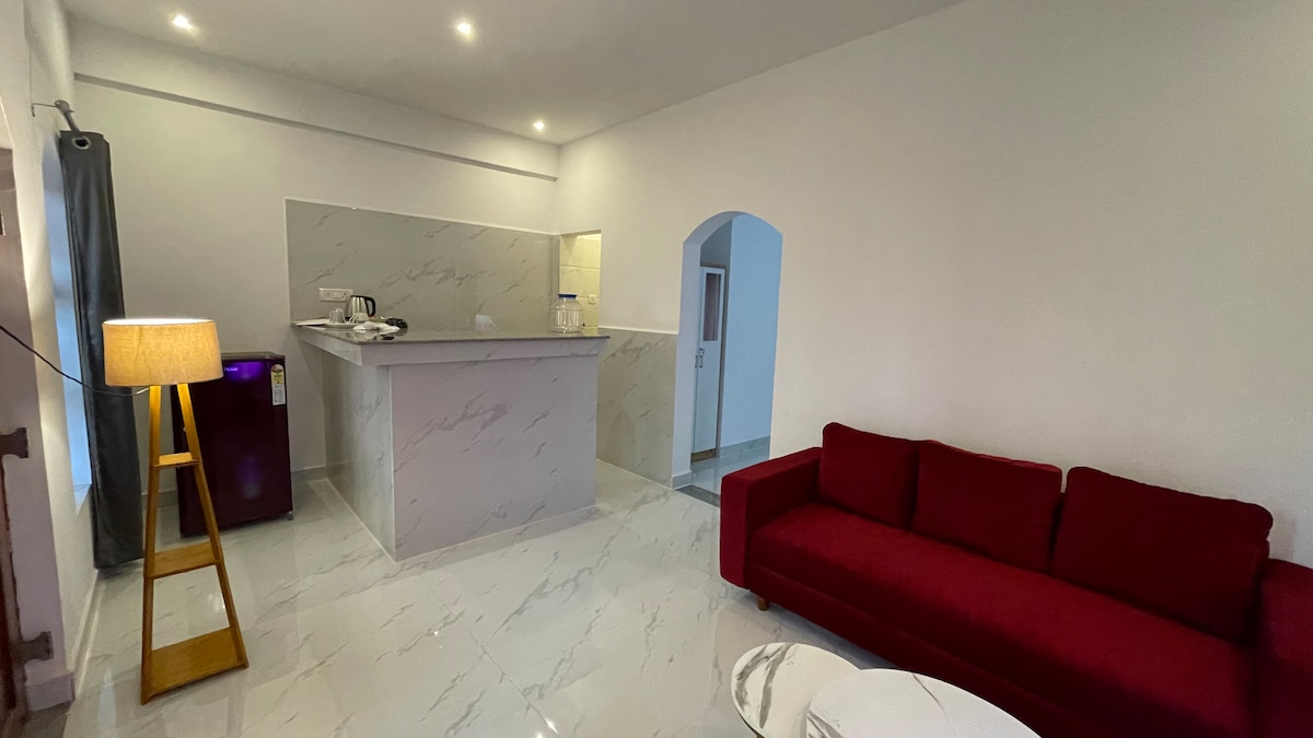 Este hogar lejos de casa es un apartamento tipo estudio bien equipado para parejas. El alojamiento es perfecto para turistas que buscan estancias cortas, así como para personas que buscan trabajar desde casa. El apartamento cuenta con un generador de respaldo las 24 horas, los 7 días de la semana, y wifi de alta velocidad de 100 MBPS. La ubicación es céntrica en la costa turística de Goa Norte y todas las playas son fácilmente accesibles en 10-20 minutos en coche. Disfruta de una experiencia de lujo en este céntrico alojamiento.