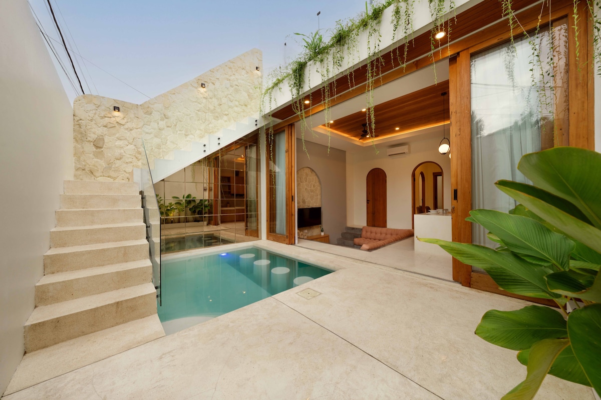Esta tranquila casona privada en Canggu combina el encanto mediterráneo con el alma balinesa. Disfrutá de un alojamiento entero para vos: un dormitorio grande con aire acondicionado, pileta privada, sofá en forma de arco, un acogedor cine en casa y una terraza para ver el atardecer. A pocos pasos de cafeterías, gimnasios y la playa de Batu Bolong. El servicio de limpieza diario está incluido, y nuestro amable administrador de la villa está cerca si es necesario, pero nunca se entromete. Es tu propia escapada serena para relajarte y sentirte como en casa en Bali.