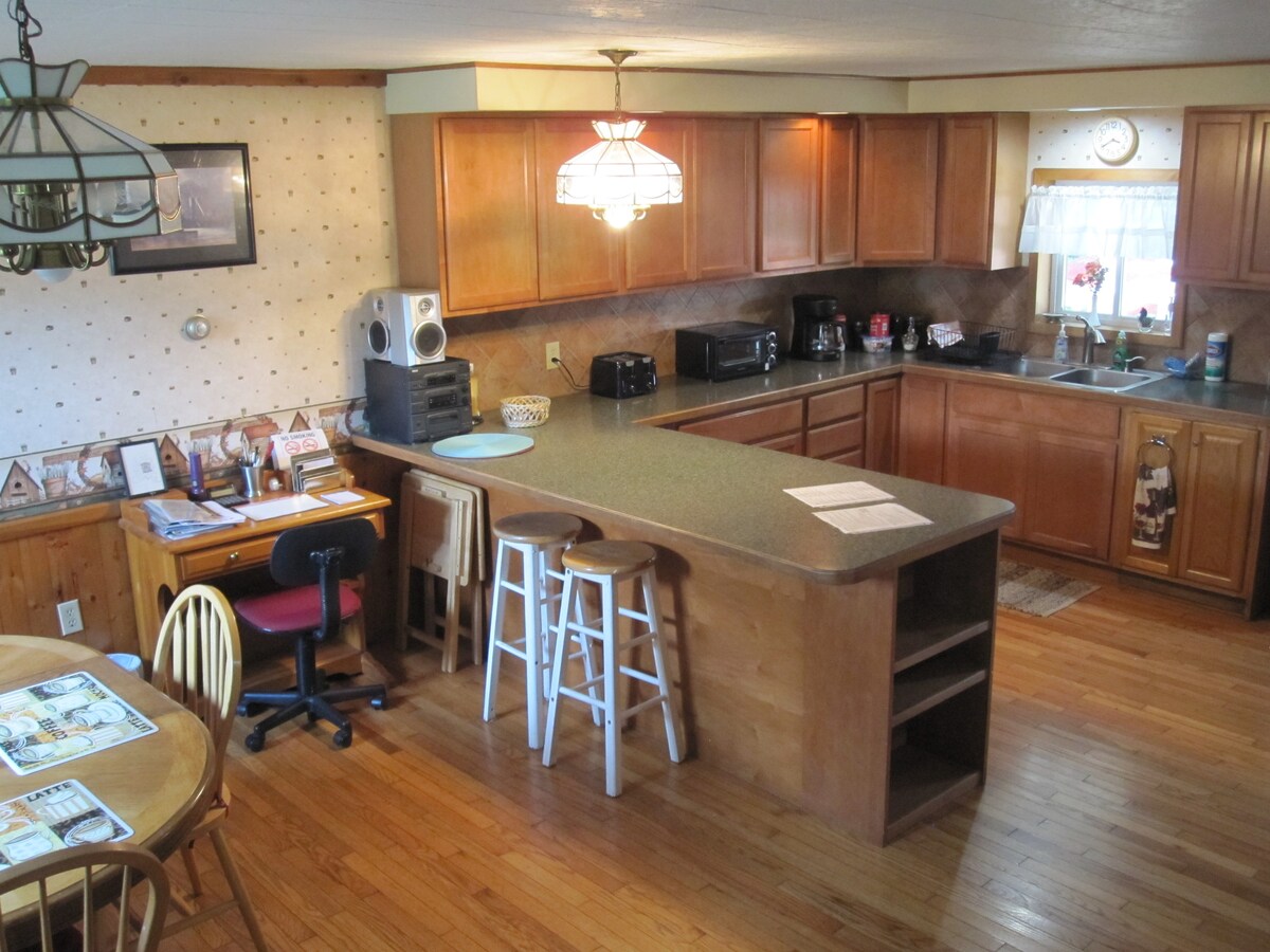 Esta casa de un solo nivel se encuentra a las afueras de Hornell, Nueva York, en un entorno rural tranquilo y aislado. Letchworth a 45 minutos, Watkins Glen a 1 hora y las cataratas del Niágara a 2 horas. Compramos la propiedad en 2018 e hicimos las mejoras necesarias, conservando el carácter original de esta casa clásica. ¡La vista de los bosques desde la sala de estar es espectacular! Vivimos en la propiedad adyacente ubicada a unos cientos de metros de distancia, por lo que estamos disponibles según sea necesario.