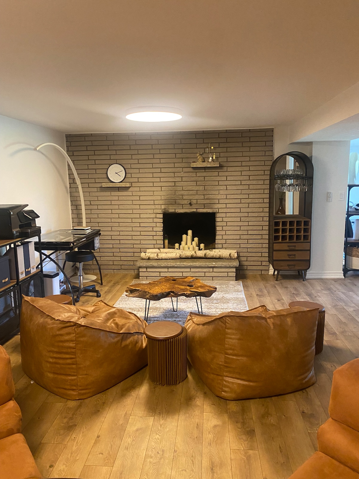 ¡POR FAVOR, LÉELO! Mt. St. Louis y Horseshoe Valley a la vuelta de la esquina! Esta es una SUITE DE INVITADOS luminosa, grande y privada (apartamento en el sótano). Bañera de hidromasaje, patio, chimenea y sendero aislado en el bosque para disfrutar de la naturaleza. La cocina está equipada con una placa de inducción y todas las cosas necesarias, incluso un abridor de botellas de vino :) Sala de estar/cocina/comedor de concepto abierto con TV y Roku. El dormitorio es una obra de arte: ¡oscuro, misterioso y romántico! Cama tamaño queen personalizada hecha de madera de granero desgastada recuperada de nuestra propiedad.
